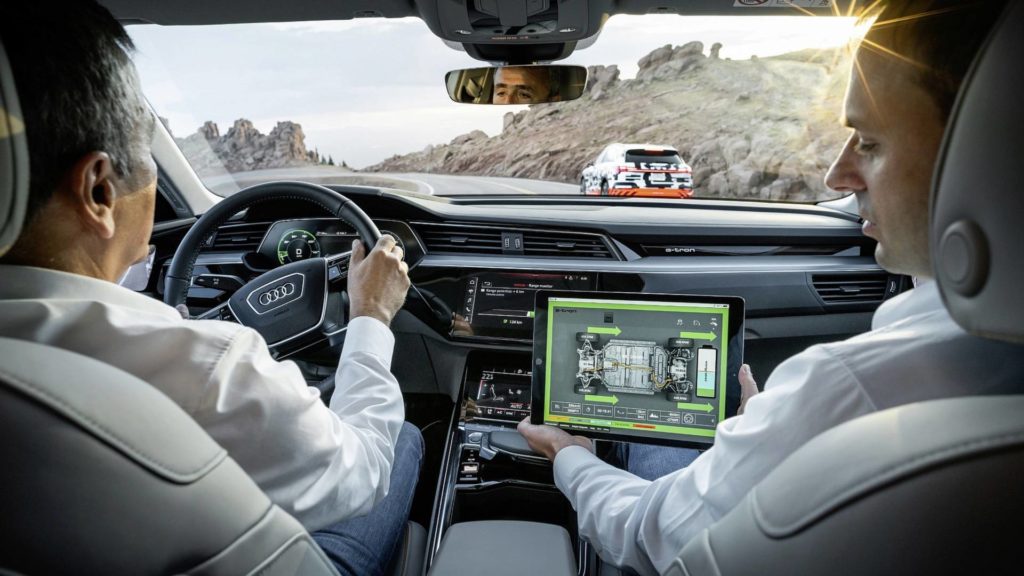 O SUV da marca de Ingolstadt integra um inovador sistema de controlo e travagem electro-hidráulico que permite utilizar três modos diferentes para recuperar energia com o objectivo de recarregar o pack de baterias sempre que possível. Em Pikes Peak, numa secção de estrada com praticamente 2 km de descida contínua, o modelo conseguiu gerar electricidade através de “coasting” manual, “coasting” automático, recorrendo a tecnologia preditiva e ainda através da travagem regenerativa. Através do modo “coasting” automático, a Audi revelou que o modelo regenera um quilómetro de autonomia por cada quilómetro percorrido em sentido descendente.