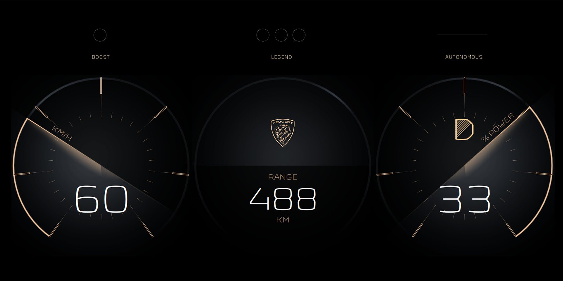 Por baixo do manto musculado do e-Legend, a Peugeot colocou uma verdadeira montra tecnológica para o futuro. Tem dois motores elétricos, um em cada eixo, que debitam 462 CV e 800 Nm de binário, entregues, naturalmente nas quatro rodas. Chega dos 0-100 km/h em menos de 4 segundos e chega aos 220 km/h. Com uma enorme bateria de 100 kWh colocado no fundo do carro, a autonomia será superior a 600 km.
