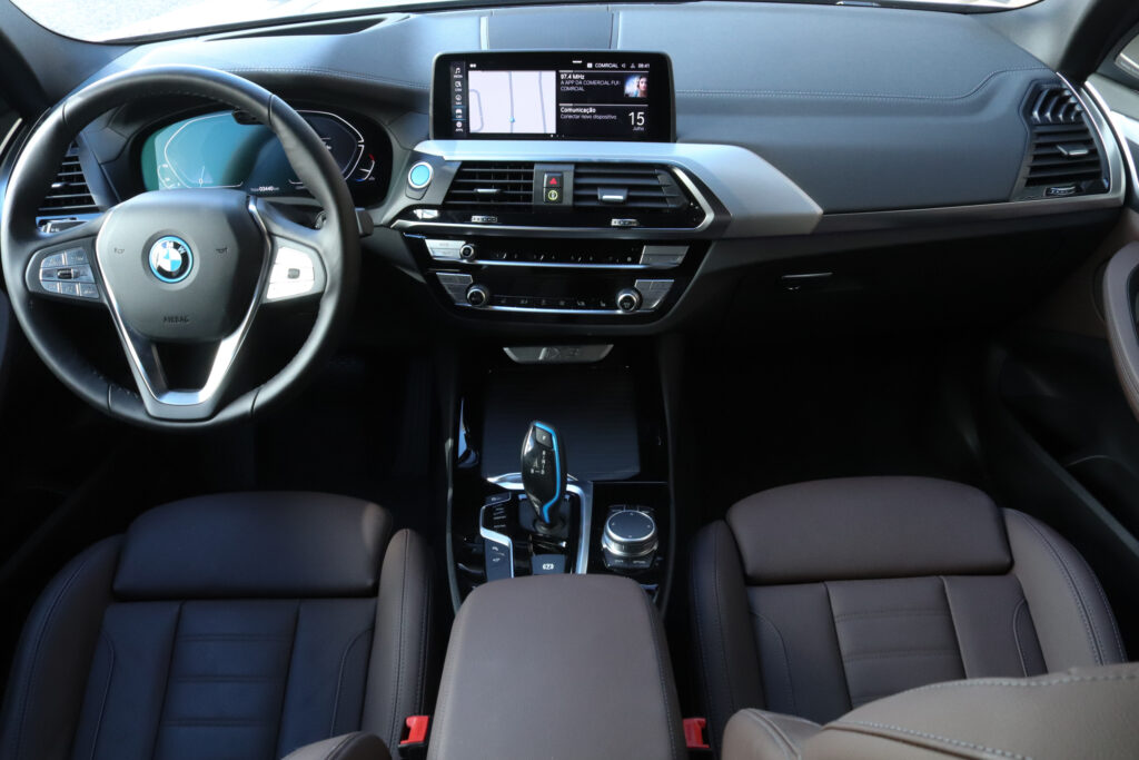 Equipamento (7/10) No capítulo do equipamento, o BMW iX3 em ensaio recorre à versão “Impressive” que aumenta o valor total em 5204€. Ao selecionar esta versão pode contar com coisas como jantes de 20 polegadas com pneus mistos, sistema de acesso Comfort, vidros com proteção acústica, bancos dianteiros desportivos, aquecidos, com apoio lombar e ajuste de largura no banco do condutor, BMW IconicSounds Electric, faróis LED adaptativos, assistente de estacionamento plus, head-up display, sistema de som premium Harman/Kardon, conectividade e carregamento wireless ao smartphone. A unidade em questão conta ainda com o pack Advantage (634€) e frisos interiores em alumínio com acabamento cromado Pearl (138€).