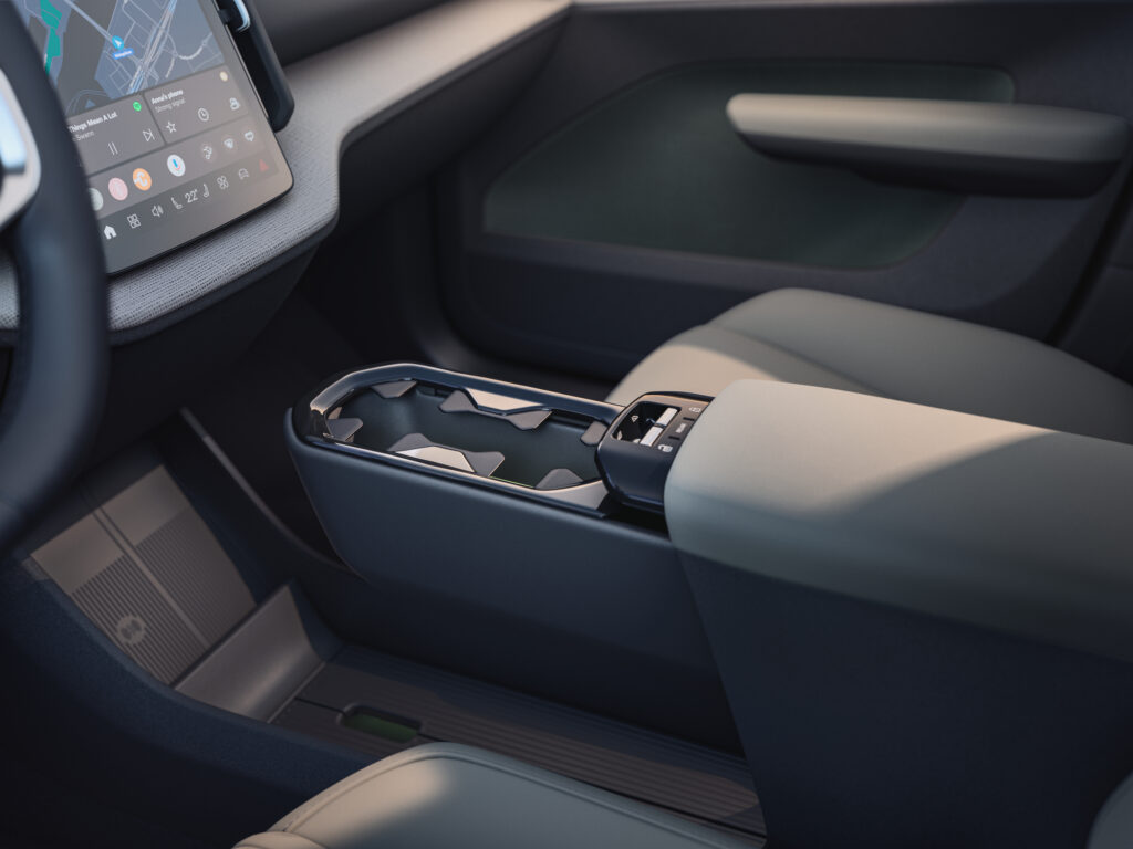 Para além disso, este modelo possui uma barra de som a toda a largura do painel de instrumentos – a primeira deste género num automóvel – e uma série de soluções de arrumação inteligentes. Na mesma linha, os interruptores dos vidros foram deslocados para a consola central sendo de fácil acesso quer para o condutor, quer para o passageiro. A Volvo deslocou também o porta-luvas para uma posição por baixo do ecrã central. Isto significa que, tanto o condutor como o passageiro podem agora aceder-lhe. Já a consola central é versátil. Com um sistema deslizante que permite escolher a forma como o condutor pretende utilizar o espaço. A parte superior do suporte para copos pode ser deslizada para fora para segurar objetos ou movida para trás conseguindo criar ainda mais espaço de arrumação. O túnel inferior tem uma área de arrumação que protege os pequenos objetos, como os óculos de sol ou os auriculares, sendo possível, no espaço maior em cima colocar, por exemplo, uma mala.