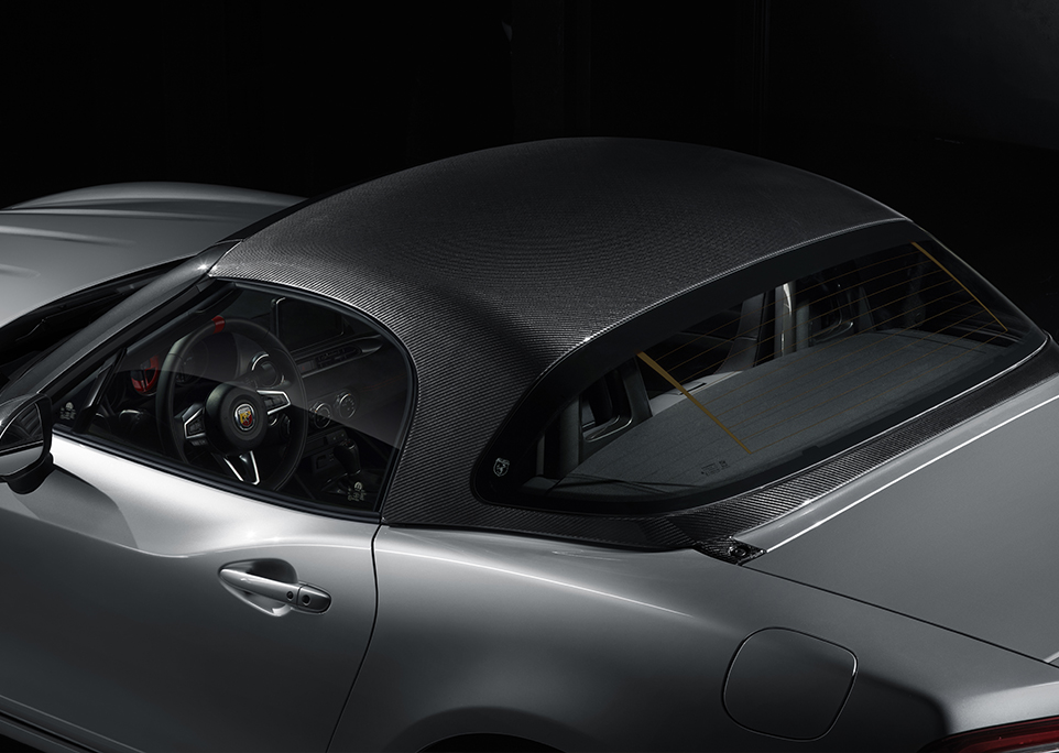 Quanto àquele que é o principal elemento de distinção no exterior, a capota em fibra de carbono, faz igualmente parte do equipamento de série, embora também possa ser adquirida como opcional, pelo preço de 2.980 euros, mais IVA. Neste caso, apenas e só para ser utilizada em unidades GT com a tradicional capota de lona.
