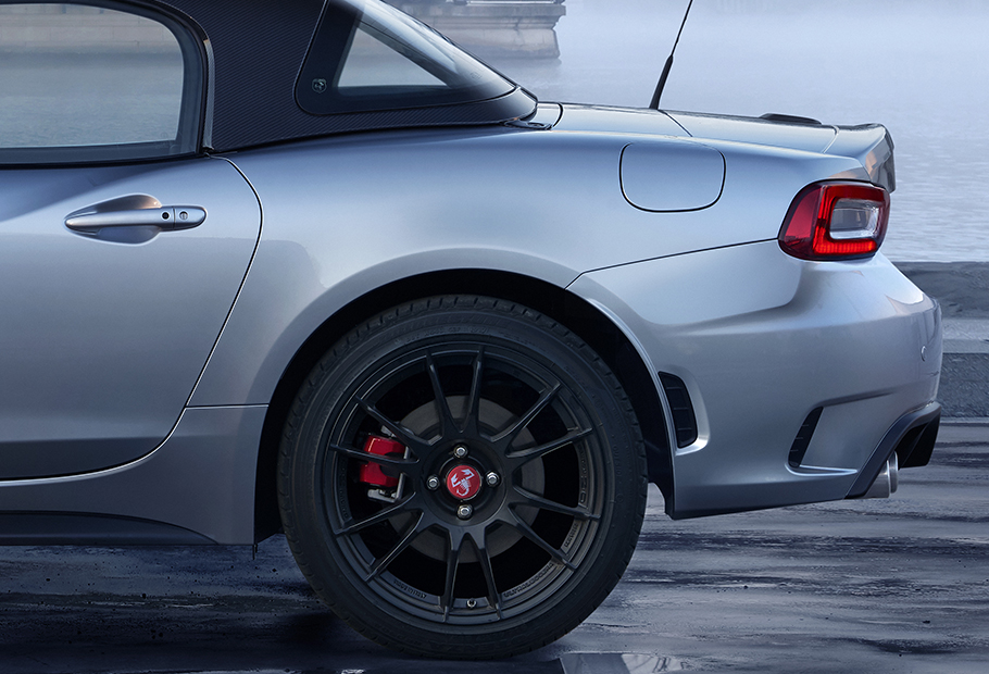 Embora tendo por base praticamente os mesmos recursos técnicos do MX-5, a verdade é que, em termos estéticos, e principalmente no que ao exterior diz respeito, o Abarth 124 GT faz questão de afirmar-se como uma proposta visualmente diferente. Apostando não apenas numa troca quase obrigatória de grelha, ópticas, farolins e pára-choques, como também em cores distintas – cinzento, preto e vermelho. As quais, no carro italiano, procuram recuperar a imagem de alguns Abarth de outros tempos, em conjunto com inevitáveis “escorpiões” que é possível encontrar no capot e tampa da mala, pára-lamas dianteiros e cubos da rodas.