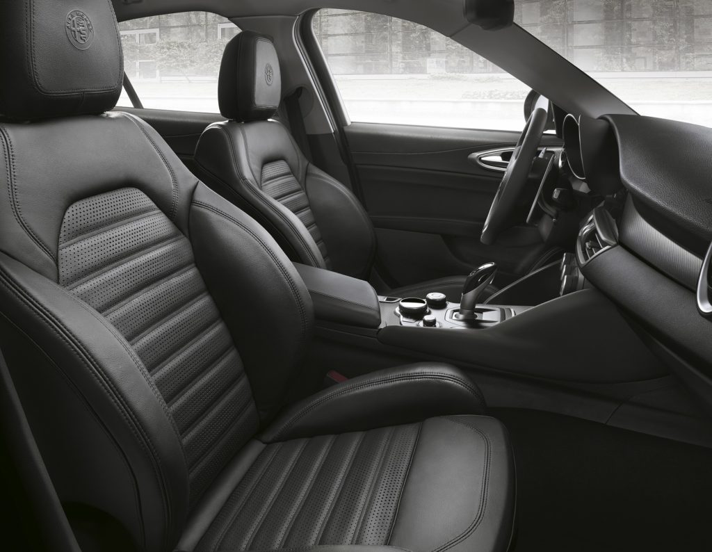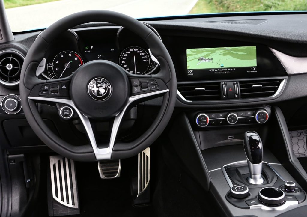 O Giulia 2.2 D Q4 Veloce é um misto de emoções no que ao equipamento diz respeito: completo, de uma forma geral, por um lado, mas com algumas falhas indesculpáveis para o patamar de automóvel onde se situa, por outro. Sem ter que tirar mais um cêntimo da carteira é possível contar com airbags laterais dianteiros (mas não traseiros) e de cortina, sistema de controlo de pressão de pneus, sistema assistente de faixa de rodagem, sistema de aviso de aproximação, faróis bi-xenon (mas não LED), sistema de travagem automática, ar condicionado automático bizona, bancos em pele, sistema Bluetooth, caixa automática de 8 velocidades, sistema de cruise control (a variante de cruise control adaptativo tem um custo suplementar de 1.200 €), acesso à Internet, sensores de chuva/luz, sensores de parque traseiros (dianteiros custam mais 300 €), sistema de navegação (se for em 3D com écran de 8,8’’ tem que adicionar 1.900 €). Bancos e volante aquecido são cortesias também bem-vindas.