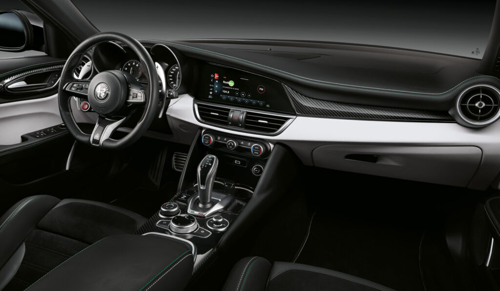 Motor Tipo: 6 cilindros em V, injeção direta, biturbo, gasolina Cilindrada (cm3): 2891 Diâmetro x Curso (mm): n.d. Taxa de Compressão: n.d. Potência máxima (CV/rpm): 510/6500 Binário máximo (Nm/rpm): 600/2500-5000. Transmissão: automática de 8 velocidades Direção: Pinhão e cremalheira assistida eletricamente Suspensão (ft/tr): Alfa Link – independente, triângulos duplos/independente, multibraços Travões (fr/tr): discos ventilados/discos ventilados Prestações e consumos Aceleração 0-100 km/h (s): 3,8 Velocidade máxima (km/h): 283 Consumos misto (l/100 km): 11,5 Emissões CO2 (gr/km): 261 Dimensões e pesos Comprimento/Largura/Altura (mm): 4702/1955/1681 Distância entre eixos (mm): 2818 Largura de vias (fr/tr mm): n.d. Peso (kg): 1830 Capacidade da bagageira (l): 525 Deposito de combustível (l): 64 Pneus (fr/tr): 255/45 R20 / 285/40R20 Preço da versão base (Euros): 132.500 Preço da versão ensaiada (Euros): 145.718