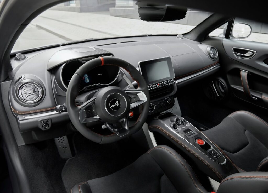Atrás das costas está o bloco de quatro cilindros com 1.8 litros sobrealimentado, igualzinho ao do Renault Megane RS, que aqui tem 292 CV. Podia ter 310 CV ou até mais, mas Jean Rédélé sempre defendeu que mais importante que a força bruta (leia-se potência) era a leveza e a agilidade. Para isso, o bloco do Alpine recebeu uma admissão específica, um turbo novo, sistema de escape diferente e o mapa do motor. Mas a verdade é que estes mais 40 CV até nem fazem grande diferença… menos 1 décimo no 0-100 km/h.