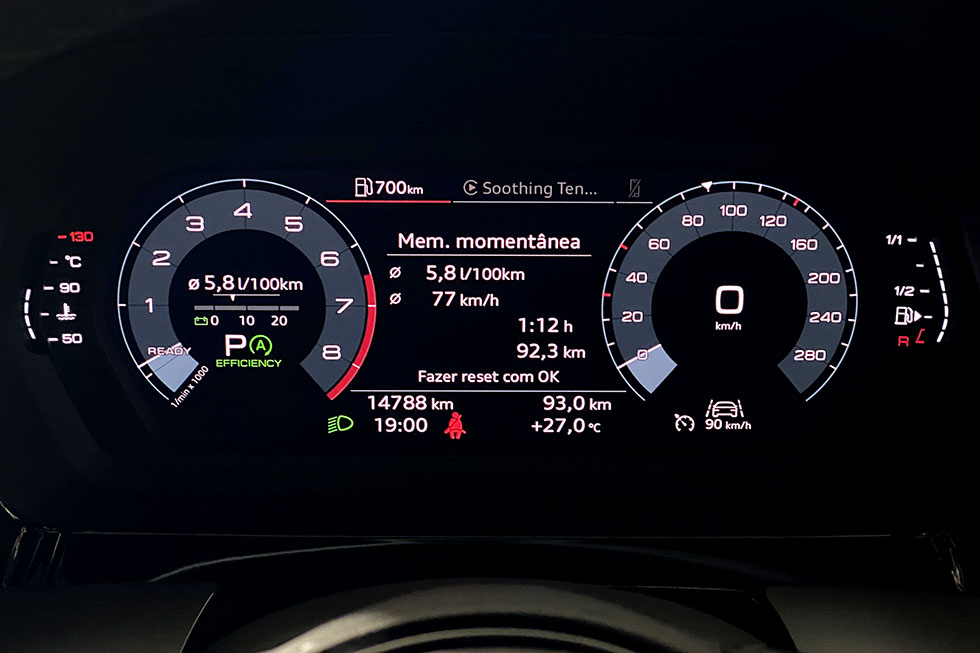 Há duas impressões imediatas que temos assim que nos sentamos a bordo do Audi A3. A primeira é a de que todo o habitáculo é demasiado cinzento, uma vez que neste patamar da gama, os elementos mais elegantes e com uma estética melhorada ainda não são muito numerosos, estando muito afastados de um RS3, por exemplo, por motivos óbvios. A segunda impressão é que, apesar do visual cinzento, todo o conjunto é bastante sólido e tipicamente alemão. De uma maneira geral, a qualidade dos materiais é elevada e a posição de condução é excelente, com regulações bastante amplas e simples de adaptar ao nosso gosto. Lá atrás, o espaço disponível não é dos mais abundantes, mas com um pouco de jeito, tudo se consegue. E ainda mais atrás, os 380 litros de capacidade da bagageira chegam perfeitamente.