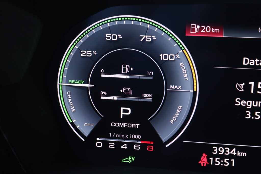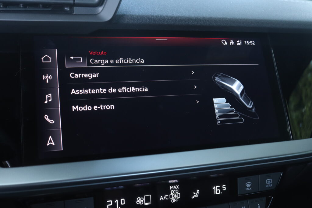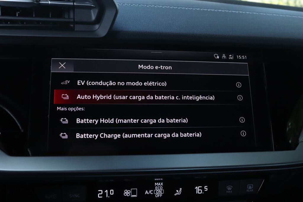 Consumos (9/10) Ao nível de consumos, o Audi A3 Sportback 40 TFSIe beneficia, e muito, da autonomia elétrica garantida pela bateria de 13 kW. Nos primeiros 100 quilómetros em modo híbrido, com a bateria a 100%, realizámos uma média de 2,6 l/100km. Este valor está em linha com o praticado pelo A250e. Quando acaba a bateria e é necessário utilizar em exclusivo o motor a combustão, o A3 Sportback mostrou-se ligeiramente mais poupado do que o A250e, ao permitir, com alguma facilidade, manter os consumos a rondar os 6 l/100 km. Quanto a autonomia, o 40 TFSIe tem uma autonomia anunciada de 64 km, um valor inferior aos 69 km anunciados pelo rival da Mercedes.