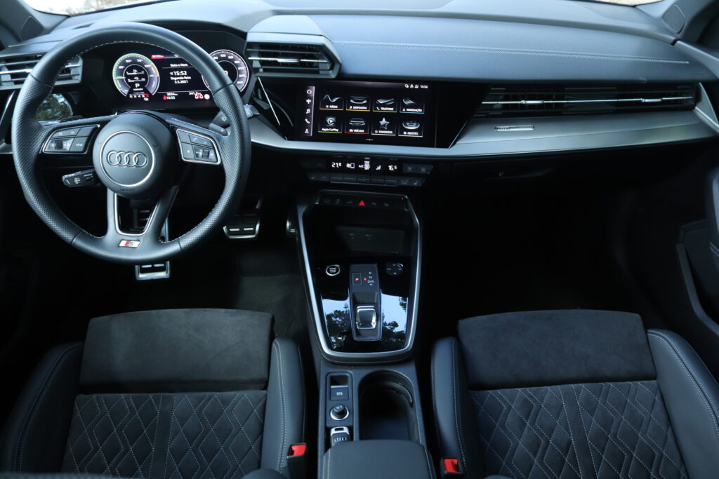 Equipamento (8/10) No capítulo do equipamento, a unidade em ensaio apresenta-se na variante S Line, ou seja, recebe uma imagem mais desportiva. Apesar do recheio de série ser positivo, como é comum na casa alemã há uma longa lista de opcionais. O A3 Sportback que tivemos para ensaio contava com alguns, como é o caso de câmara traseira (500€), bancos em couro sintético e alcantara (670€), faróis LED com indicações de mudança de direção traseiros dinâmicos (1085€), pacote interior S Line (1740€), MMI Navegação Plus (2175€), banco traseiro rebatível (245€), sensores de estacionamento dianteiros e traseiros (430€), Audi Virtual Cockpit plus (295€), entre outros. Resumindo, é relativamente fácil subir o preço a pagar pelo A3 Sportback e, no caso desta unidade, o valor recebeu um acréscimo de 12 050€ só em opcionais.