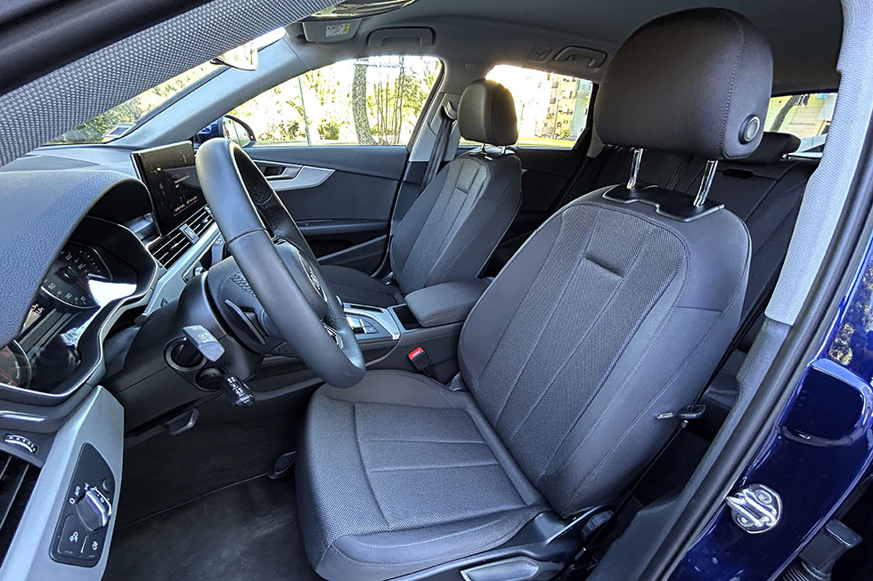 A posição de condução é excelente, com algumas das regulações mais amplas do segmento, mas depois, percebemos rapidamente que o habitáculo já não é assim tão amplo como nos modelos mais recentes e que esta plataforma ainda é daquelas que nos deixa numa altura normal, sem as medidas necessárias para baterias de sistemas elétricos por baixo do habitáculo e sem ter de ficar mais próxima das cotas de um SUV. Ou seja, nesta Audi A4 Avant vamos perfeitamente sentados e próximos do asfalto, o que já é raro, mas ainda muito desejado por quem gosta de conduzir.