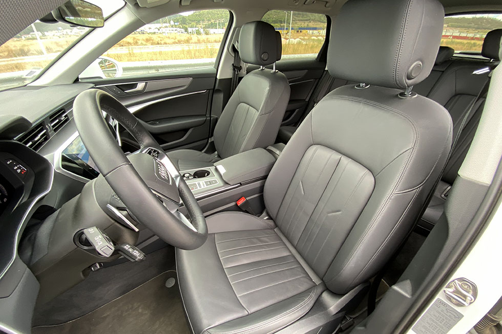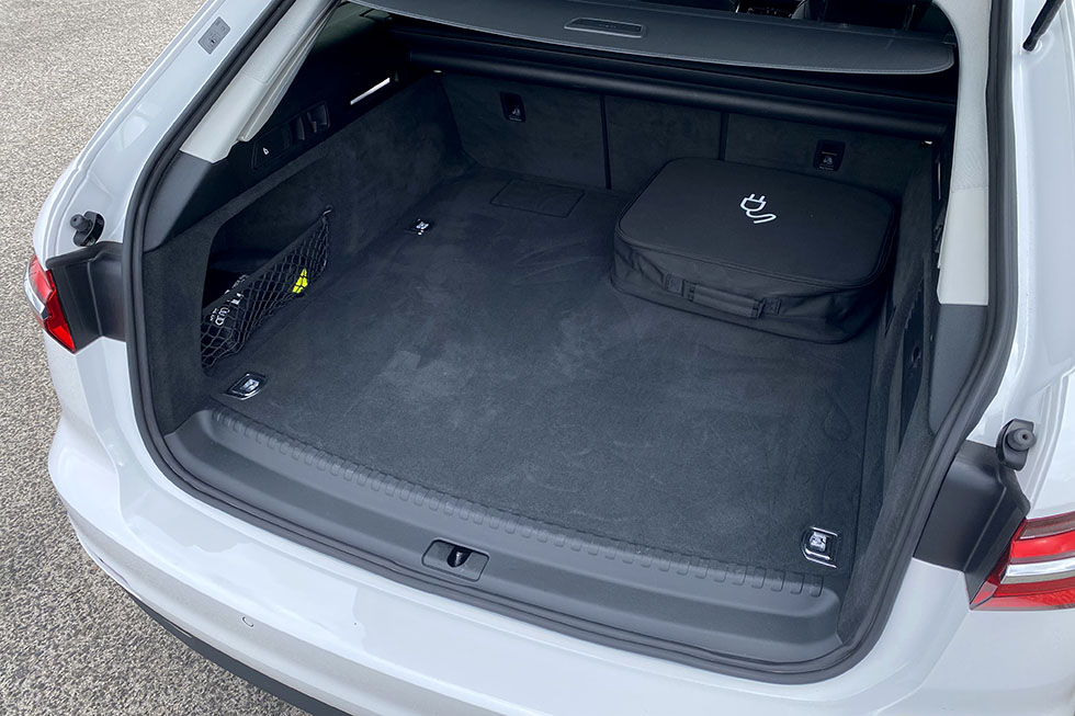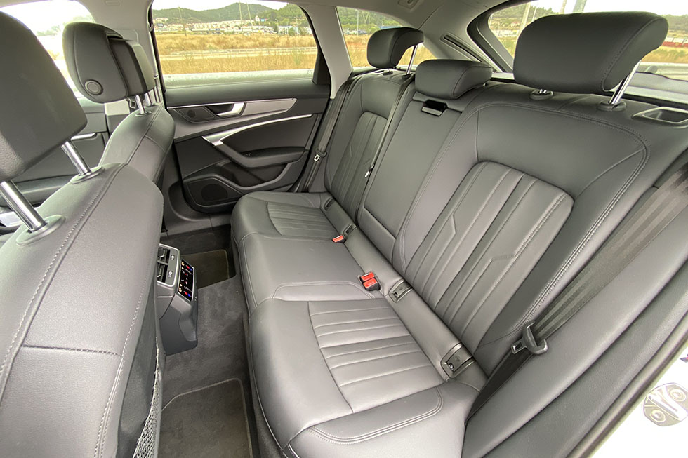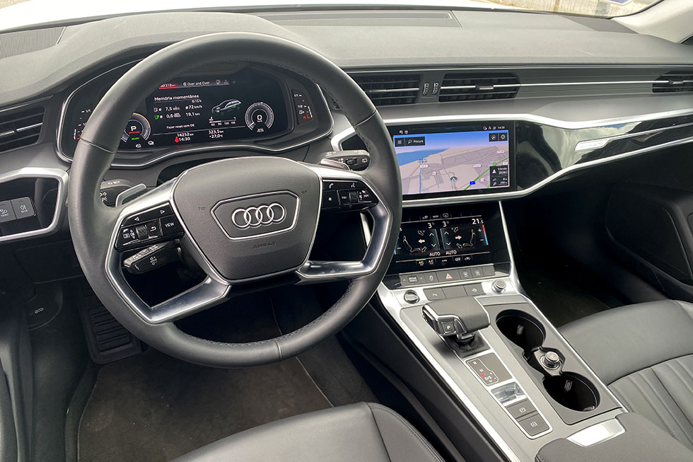 No Audi A6 encontramos um visual muito aproximado ao do topo de gama da marca dos anéis, ainda que num formato de carrinha mais familiar. Quem viaja na frente conta com assentos muito confortáveis e com regulações bastante amplas, mas também com um ambiente bastante tecnológico e sofisticado, com diversos monitores táteis e de feedback háptico, mas também com um desenho moderno que inclui linhas marcantes e uma solução que privilegia a disponibilidade de informação para quem está ao volante. Lá atrás, o espaço disponível é muito amplo, fruto de uma distância entre eixos muito próxima dos três metros, mas que não inclui um espaço específico para a arrumação das baterias do sistema híbrido, fazendo com que estas tivessem de ser arrumadas sob o piso da bagageira, deixando a sua capacidade máxima nuns escassos 405 litros de capacidade.