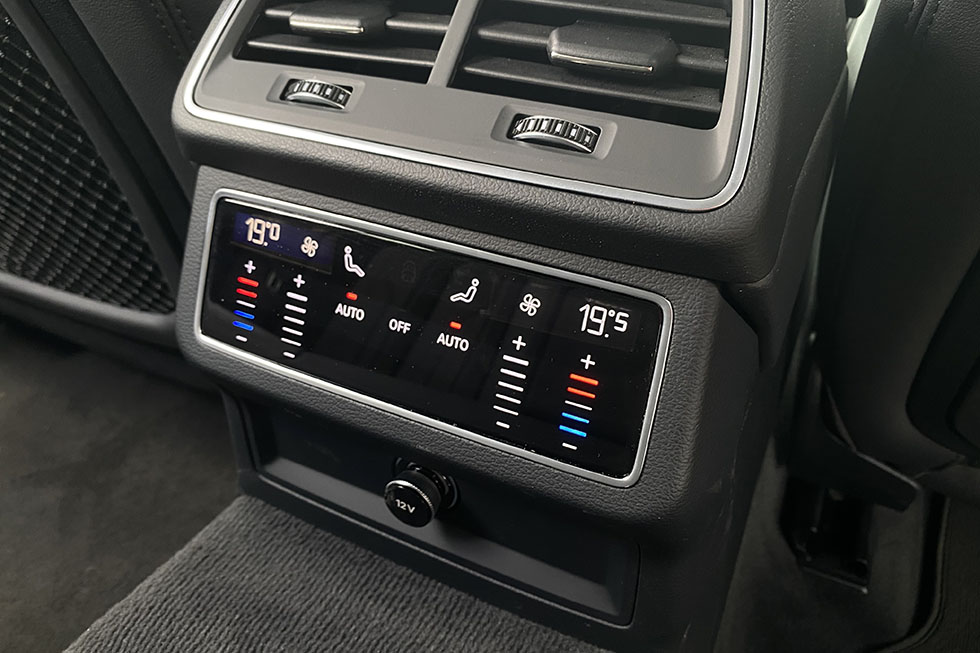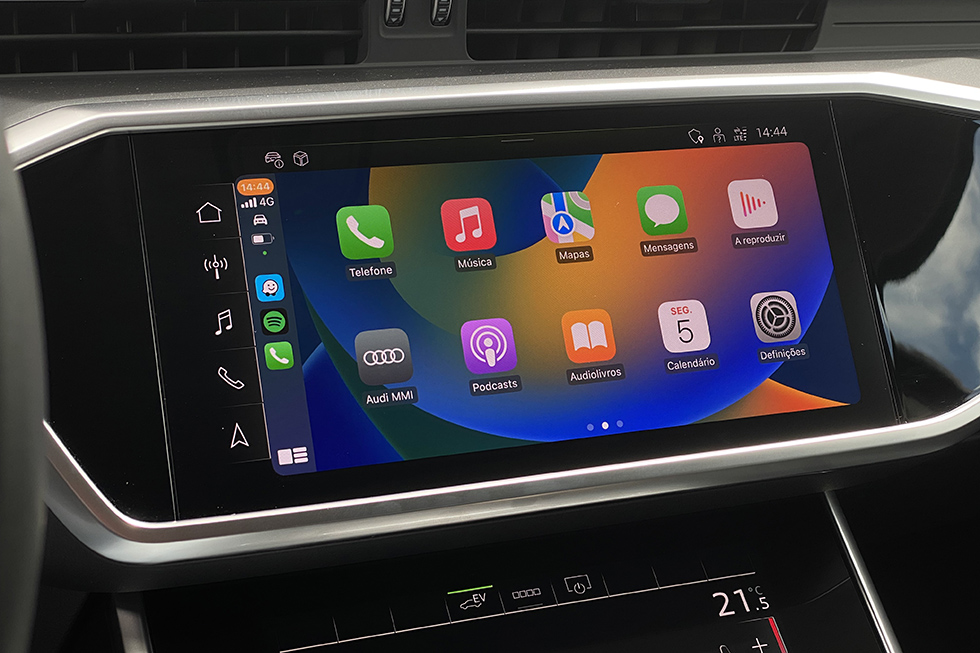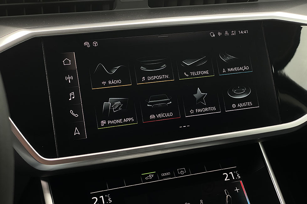 Tal como acontece com outros modelos da marca, a Audi fala bastante a sério quando refere a presença da sua versão base. Na unidade ensaiada, por exemplo, as jantes eram de 18 polegadas, mas pareciam destoar de todo o conjunto e não estavam presentes os sistemas de iluminação mais sofisticados em LED, nem os que acrescentam uma assinatura visual mais personalizada. No habitáculo, em contrapartida, há assentos em pele com regulação elétrica, ar condicionado automático com regulações independentes em quatro zonas, um painel de instrumentos digital e de visual personalizável, dois monitores táteis na consola central, – sendo um mais vocacionado para as regulações da climatização e o outro para todas as funções do sistema multimédia – um teto de abrir panorâmico e o sistema de abertura e fecho automático da tampa da bagageira, acompanhado de uma coreografia da chapeleira, que sai do caminho ou regressa ao seu lugar de uma forma totalmente automática.