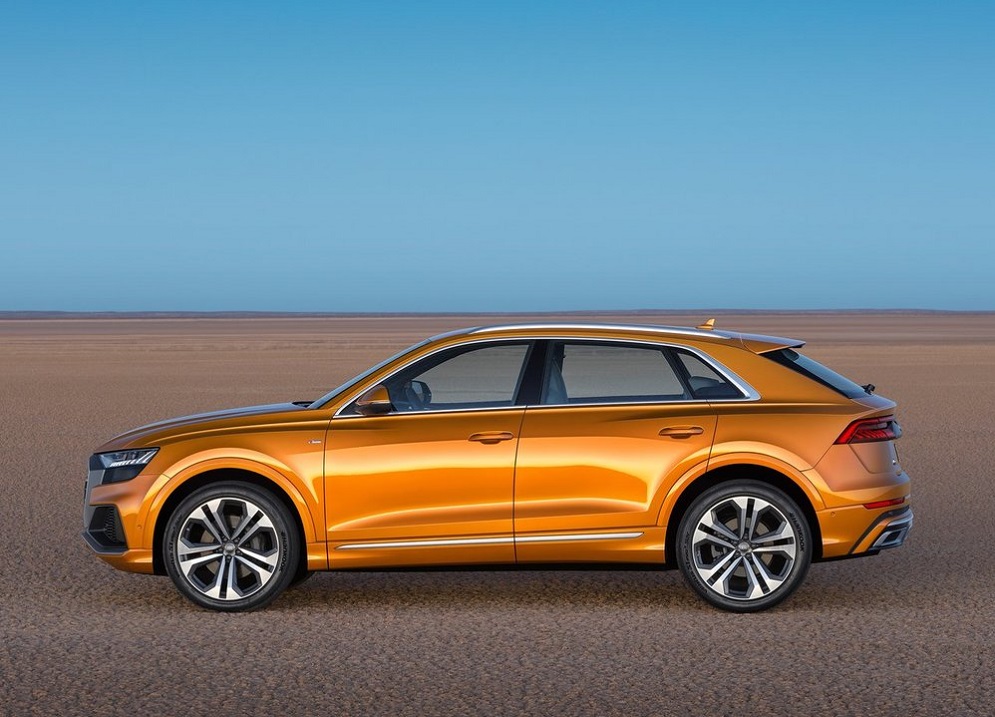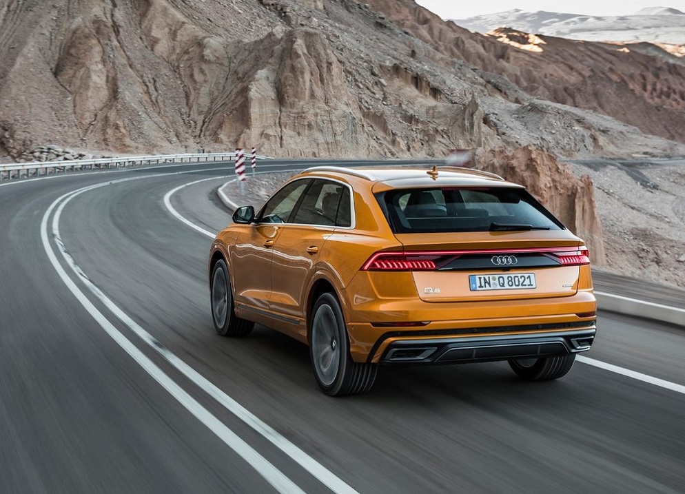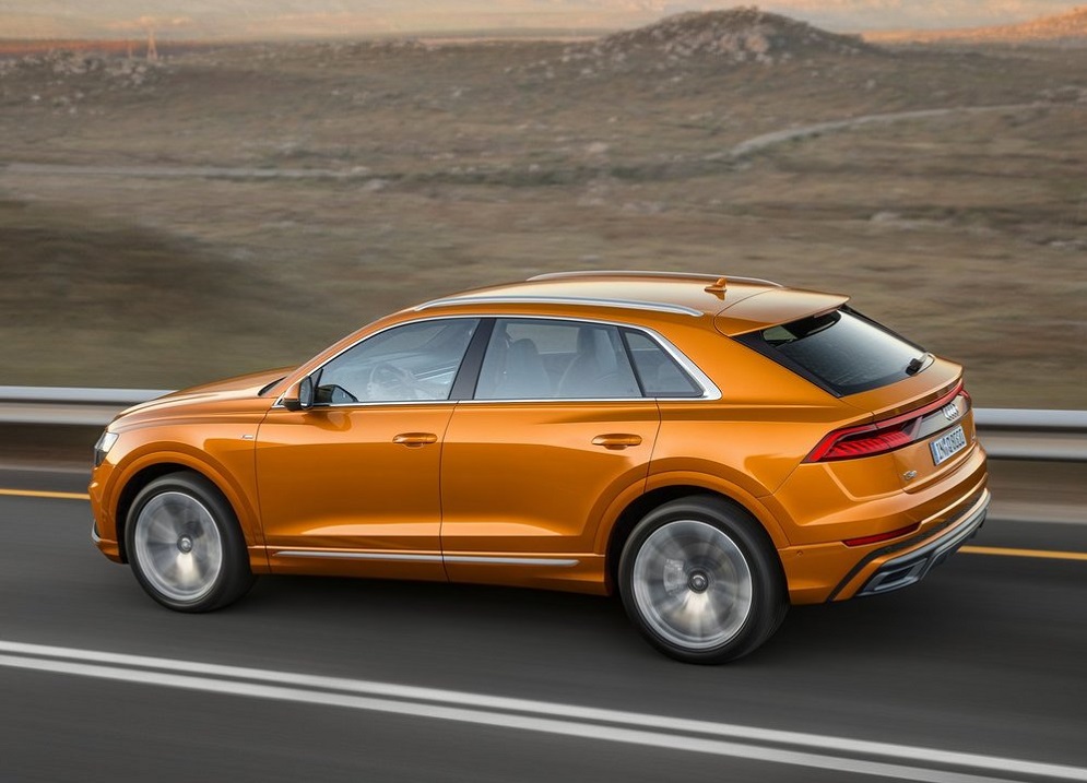 O Q8 segue o estilo do A8, o modelo que corre a seu lado na gama da Audi. O Q8 é, claro, um topo de gama e parece, no estilo, um automóvel caro. Porquê? O Q8 tem quatro portas sem molduras nas portas e uma traseira muito inclinada que desenha a forma coupé. A enorme grelha dianteira marca a frente do carro, adicionando-se cavas das rodas generosas e musculadas, faróis e farolins LED, com uma barra luminosa a ligar os farolins traseiros, completam um estilo musculado que não é nada aborrecido, bem antes pelo contrário, mas incapaz de promover unanimidade. Literalmente, há quem adore e quem odeia o estilo do Q8.