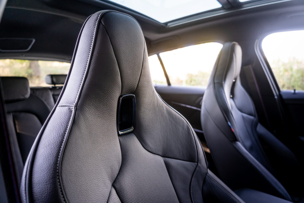 Mais à frente, condutor e passageiro contam na unidade que guiámos com excelentes bancos integrais desportivos, claramente apontados à condução mais dinâmica, capazes de suportar o corpo nas curvas mais exigentes. A digitalização domina igualmente as atenções com os dois grandes displays para o painel de instrumentos e para o infotainment. Predominam os plásticos moles, agradáveis ao toque, e as portas e tablier contam inclusivamente com luz ambiente interior personalizável.