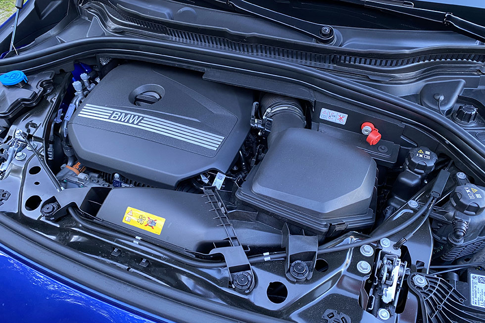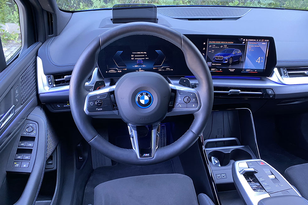 Ao volante não parece, mas lá na frente está um pequeno motor de combustão a gasolina com apenas três cilindros, 1,5 litros de capacidade e 136 cavalos de potência, responsável pela tração dianteira deste modelo. No entanto, este é ajudado por uma segunda motorização, elétrica, com 109 cavalos de potência e que está instalada no eixo posterior, ficando responsável pela tração traseira. Se usados em conjunto, são 245 cavalos de potência que acabamos por ter disponíveis debaixo do pé direito e que é um valor mais parecido com as sensações que este modelo nos transmite quando o conduzimos. O facto de ter tração nos dois eixos, também dá origem à presença do logo xDrive na tampa da bagageira, uma vez que se trata de uma versão com quatro rodas motrizes, ainda que não exista qualquer ligação mecânica entre os dois eixos.