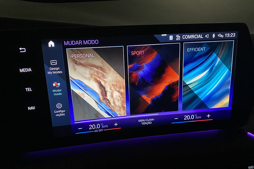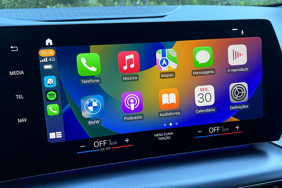 Também devido à presença do Pack M, os acabamentos que descobrimos no habitáculo são bastante cuidados e de qualidade elevada, não faltando sequer uns assentos desportivos com um bom apoio e um volante de visual também mais desportivo que, em conjunto, contribuem para uma excelente posição de condução. O maior destaque, no entanto, está no novo painel horizontal que combina a instrumentação totalmente digital e o monitor central de comando tátil e com uma resolução muito elevada.