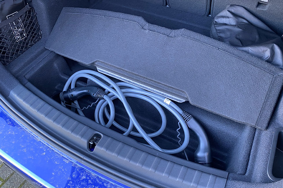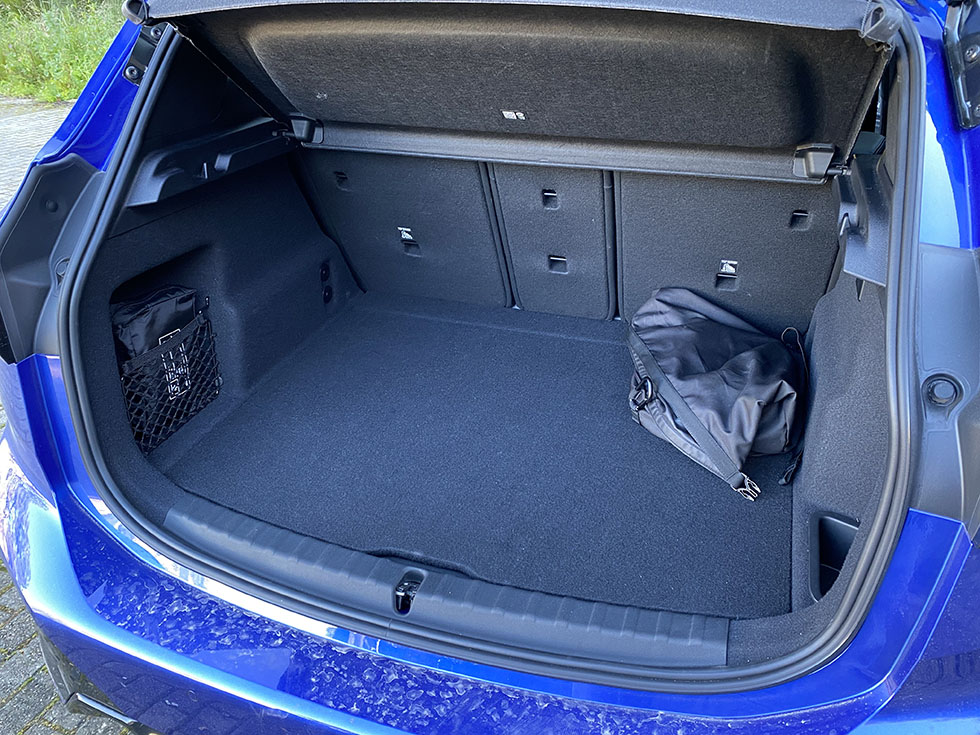 Entre os assentos dianteiros, a consola central que parece flutuar, integra os comandos da caixa de velocidades automática, o botão que inicia ou desliga o sistema e também o acesso aos modos de condução disponíveis, cada um deles com um ambiente específico a bordo. Com as rodas “empurradas” o máximo possível para as extremidades da carroçaria, o valor da distância entre eixos ficou nos 2,67 metros, suficiente para que haja espaço suficiente nos assentos traseiros para uma viagem mais tranquila. Lá atrás, no entanto, as presenças das baterias, do motor elétrico no eixo posterior e de uma reorganização de alguns componentes, fizeram com que a capacidade da bagageira tivesse ficado pelos 406 litros.