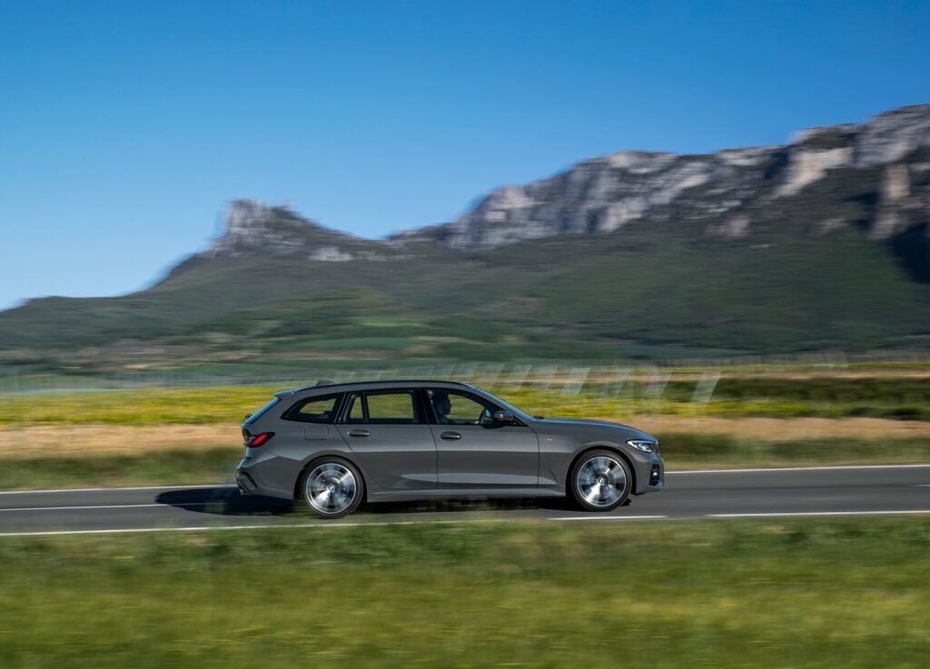 Lá está, a BMW regressou a casa e ao invés de oferecer carros sensaborões, temos direito a verdadeiros BMW. Para lá da caixa parecer ser capaz de aprender a forma como conduzimos, sendo que esta versão com tração traseira, mesmo ainda estando afinada para evitar as saídas de traseira, desligando o ESP, conseguimos nos divertir. Muito! Com uma via dianteira mais larga 43 mm, mais 21 mm na traseira e um peso a recuar devido à utilização de alumínio (menos 10 kgs), o comportamento deste 320 d Touring está a anos luz do anterior. A distribuição de peso 50/50 ajuda bastante tal como a estrutura ser 25% mais rígida. Apesar da direção não ser um exemplo de comunicação com o condutor, o carro está tão bem equilibrado que a condução é excelente. Os modos de condução adicionam mais ou menos “picante” à condução. Não adiante assim muito, mas os níveis de aderência mudam um pouco. Seja como for, a aderência da frente e da traseira é enorme a eficácia brilhante. Enfim, sabendo o que se está a fazer, o 320d Touring envolve-nos num laço de prazer de condução que estava há algum tempo arredado da BMW.