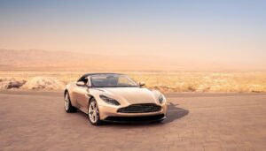 Aston Martin DB11 Volante, motor V8, 3982 cc, 510 cv, 685 Nm de binário; 0-100 km/h em 4,1 s; velocidade máxima de 300 km/h.