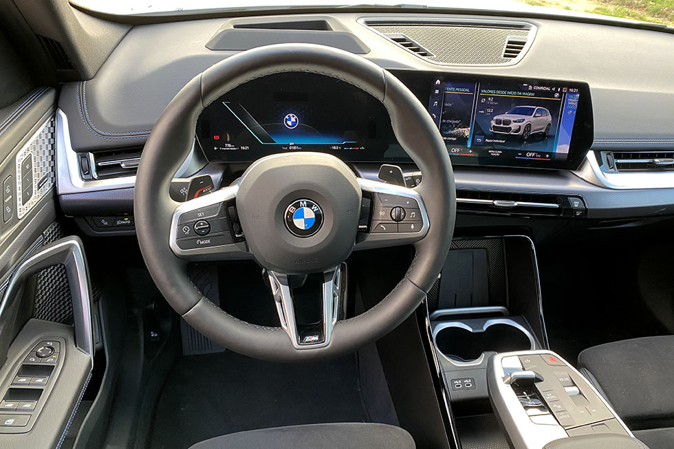 Com a nova geração do BMW X1, a maior novidade a bordo é mesmo o novo desenho da consola central e o enorme painel curvo que temos à nossa frente e que inclui os monitores da instrumentação e o do “infotainment”. Na consola central deixa de existir o comando rotativo do iDrive, mas a função tátil do monitor central é agora mais simples de se utilizar. Comum a todo o habitáculo é o incremento de qualidade a nível de materiais e montagem, que está mesmo no patamar de segmentos mais acima na própria marca.