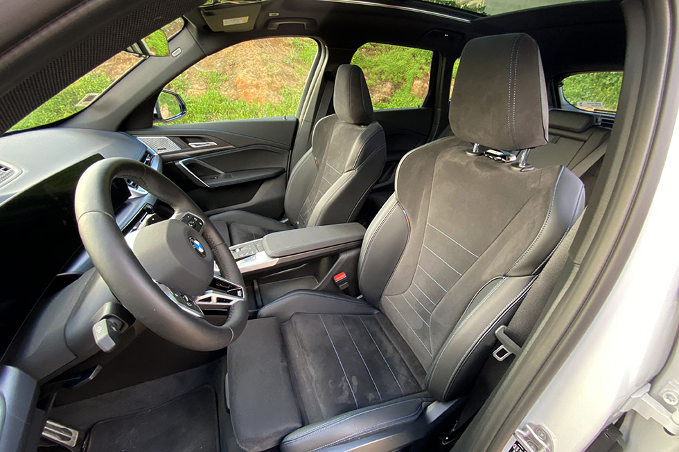 A vertente mais dinâmica da condução nunca foi grande desilusão nos modelos da BMW, mesmo nesta nova configuração (polémica para os mais puristas) que viu a tração passar das rodas dianteiras para a frente. Em conjunto com o Pack Desportivo da M, que inclui uma suspensão mais firme e de amortecimento adaptativo, notamos de imediato que o X1 está mais “colado” à estrada e que a firmeza é mais evidente, mas sem que isso estrague a nota do conforto. Ou seja, novamente, um bom compromisso entre desempenho dinâmico e conforto, perfeito para os passageiros que são mais sensíveis a ritmos mais “despachados”.