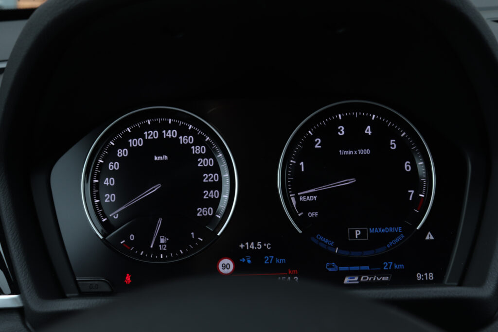 Consumos (8/10) Relativamente a consumos, a BMW anuncia uma média de 1,7 a 1,9 l/100 km. Durante o nosso ensaio, percebemos que esse valor é alcançável, pelo menos enquanto o motor elétrico continua a ser alimentado pela bateria. Porém, quando o valor de autonomia chega ao zero, os consumos sobem 5 l/100 km em percursos mistos. Já em autoestrada registámos uma média de 7,2 l/100 km. Recorrendo apenas ao modo 100% elétrico conseguimos percorrer 40 km com um único carregamento, um valor não muito distante dos 49 a 52 km anunciados pela marca alemã. Feitas as contas, se faz uma média diária igual ou inferior a 40 km, o motor a combustão raramente vai ser utilizado, o que permite preservar a gasolina para viagens mais longas.