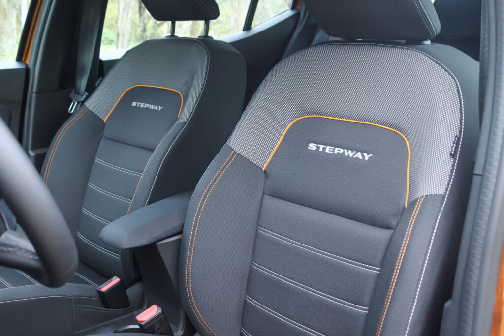 Interior (7/10) No interior, embora com algumas mudanças, o conceito é semelhante. Apesar de apresentar mais equipamento e um cuidado especial ao nível de design, os plásticos rijos ao toque continuam a dominar o habitáculo, algo necessário para manter o preço reduzido. Ainda assim, destaque para o revestimento em tecido no tablier e apoios de braços das portas que ajuda a criar um ambiente ligeiramente mais acolhedor. Atrás, o espaço convence, com a possibilidade de transportar dois adultos com algum espaço para cabeça e pernas. Já a bagageira garante 328 litros, mais 8 litros do que a anterior geração. De um modo geral, o Dacia Sandero Stepway mantém a abordagem da geração anterior no habitáculo, mas com um maior cuidado a pensar no bem estar dos passageiros.