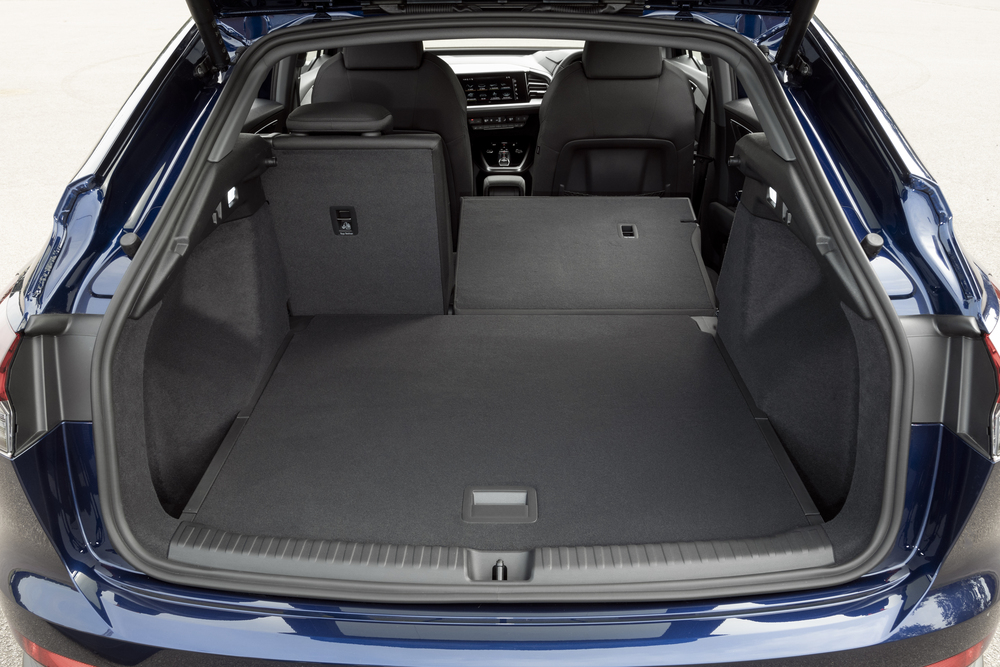 O Audi Q4 Sportback e-tron oferece ainda outras soluções de arrumação, fornecendo um volume total de 24,8 litros, incluindo o porta-luvas. Os porta-garrafas integrados na parte superior das portas são outro pormenor: mesmo garrafas de 1 litro podem ser arrumadas com segurança e com um alcance ideal. O espaço disponível no interior é comparável ao de um SUV de segmento superior, na sequência da ausência do túnel central. A sensação de espaço não se limita aos bancos dianteiros, com um generoso espaço para as pernas; os passageiros do banco traseiro também beneficiam da vantagem da plataforma modular MEB: os bancos traseiros são montados numa posição cerca de sete centímetros mais elevada do que os dianteiros, para que os respetivos ocupantes também possam usufruir de uma ampla visibilidade. Será que os passageiros mais altos vão notar a linha descendente do tejadilho? Nem por isso, o espaço e amplo, os bancos confortáveis e não falta espaço para ocupantes mais altos. A capacidade do porta-bagagem varia entre 535 e 1460 litros (banco rebatível na proporção 40/20/40).