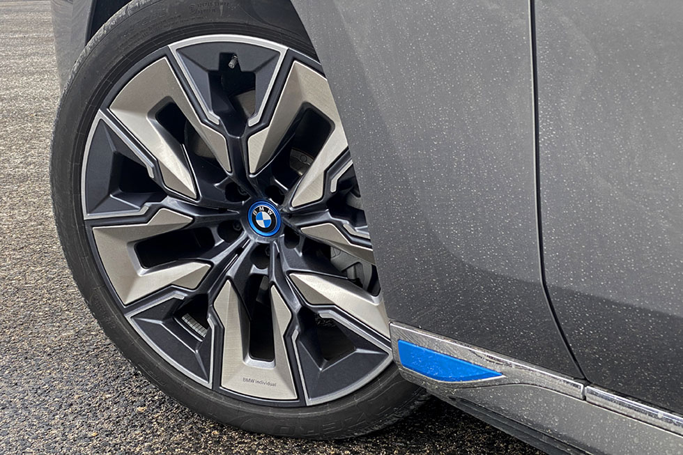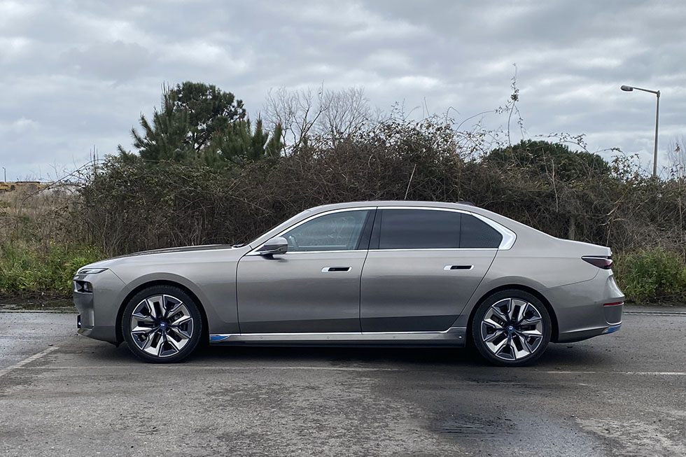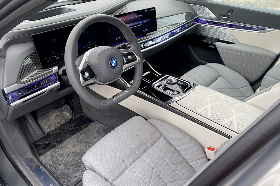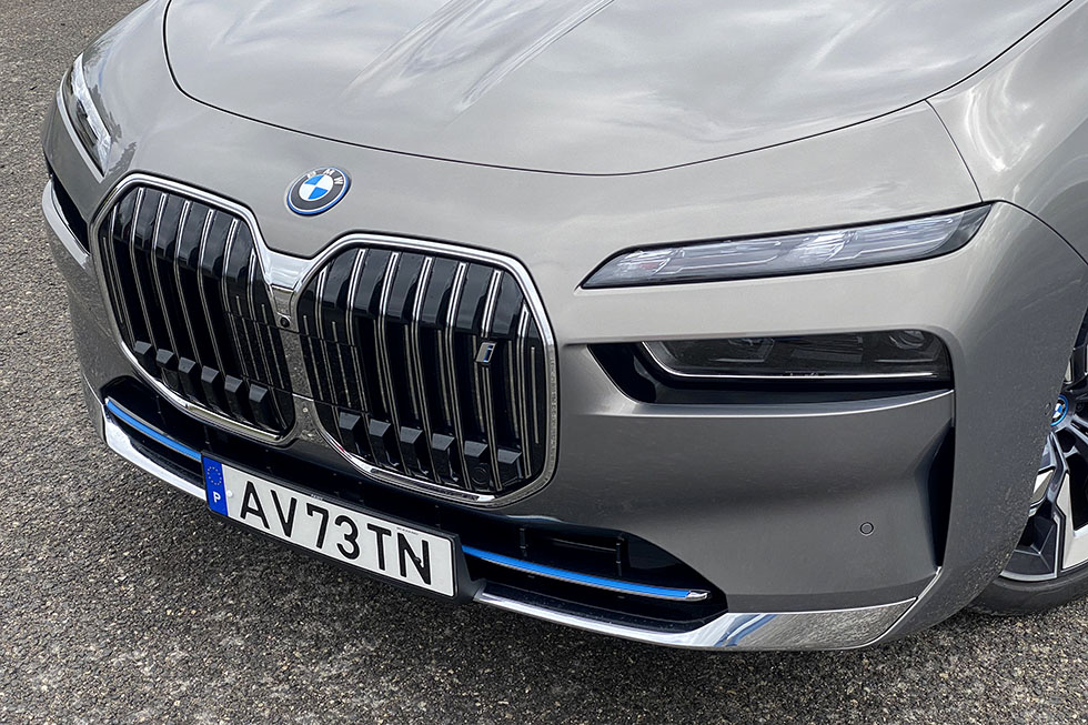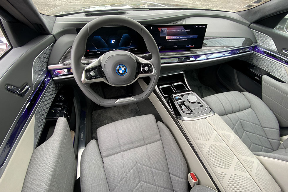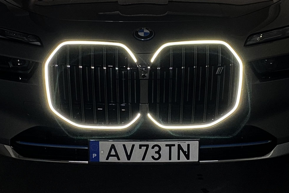 A nova geração do BMW Série 7 e esta versão totalmente elétrica impressionam pelo seu porte e pela sua presença. A carroçaria tem praticamente 5,4 metros de comprimento e dois de largura, com uma altura um pouco acima do metro e meio e só a distância entre eixos supera os 3,2 metros. Mesmo que as soluções estilistas usadas neste modelo não sejam apreciadas por todos, seja pelo tamanho da grelha dianteira ou pela divisão dos grupos óticos em dois módulos, a verdade é que a presença deste i7 impõe um enorme respeito, quando desliza em puro silêncio.
