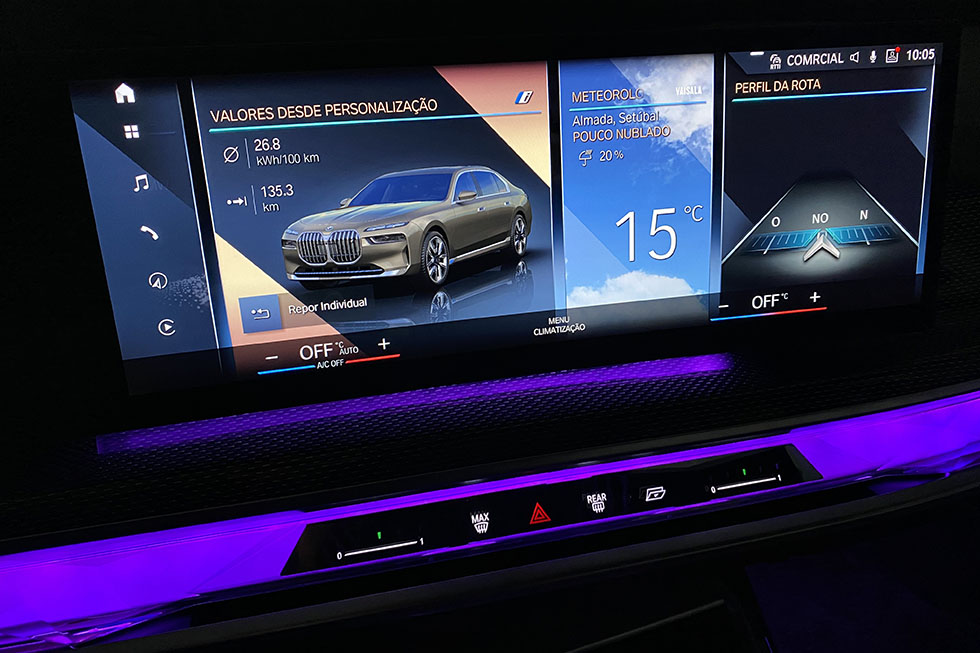 Apesar de toda a tecnologia existente no BMW i7, há ainda uma coisa que não é possível produzir: milagres. E com 2.715 quilos de automóvel para transportar, por um sistema com mais de 500 cavalos, a energia tem de vir de algum lado. O valor mínimo indicado pela BMW para o i7 é de 18,4 kWh para cada 100 quilómetros, mas basta dar uma vista de olhos ao computador de bordo desta unidade para perceber que dificilmente conseguirá registar um valor deste género. No nosso ensaio, a média final ficou nos 26,0 kWh/100 km, mas conseguimos fazer uma pequena viagem numa toada mais tranquila, que resultou num valor de 23,0 kWh/100 km. O mais curioso, no entanto, é que o valor indicado por este i7 desde que saiu da fábrica, estava estabilizado nos 25,0 kWh/100 km. Ou seja, não andámos assim tão longe da realidade.