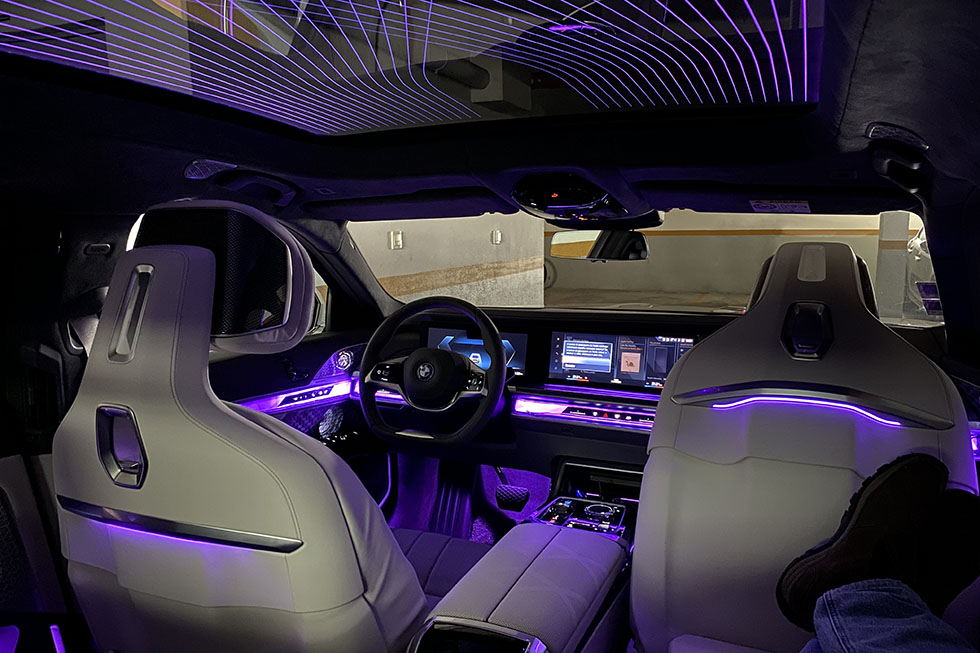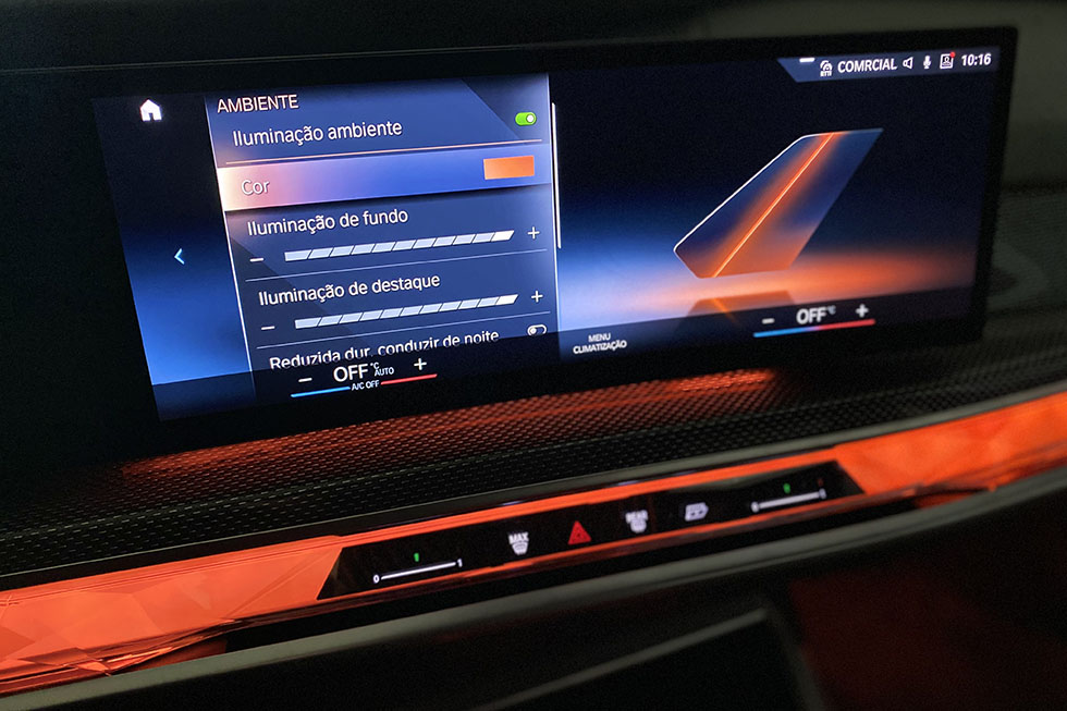 Tal como em diversos outros BMW, muito do equipamento presente neste i7 é proveniente da lista de opcionais e não da que nos mostra os equipamentos de série. Nesta unidade de demonstração, havia mais de 50 mil euros em equipamento opcional, que torna este modelo ainda mais único e especial. Destaque para o interior da BMW Individual com conteúdos exclusivos, disponível por 13.550 euros, para o sistema de som Surround Bowers & Wilkins Diamond que custa seis mil euros ou para as luzes em cristal Iconic Glow (2.180 euros), que cintilam em vez de simplesmente acender. Do lado mais prático, será sempre interessante assistir a todos os automatismos existentes neste i7, como as quatro portas automóveis ou todas as cortinas traseiras de comando elétrico, entre tantos outros.