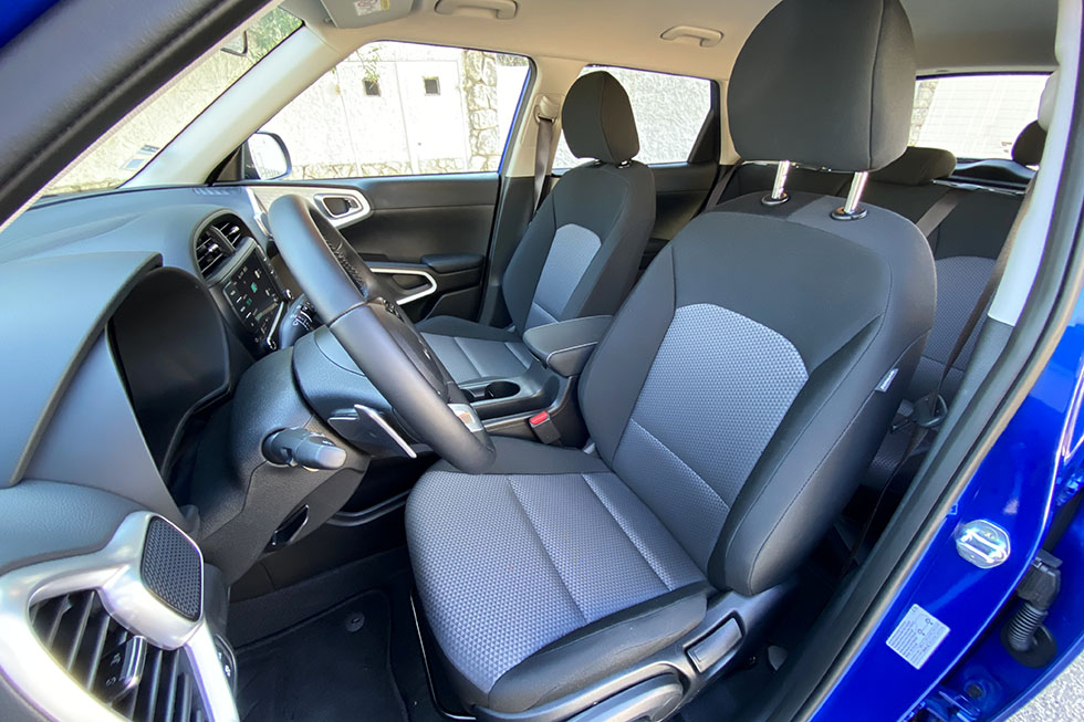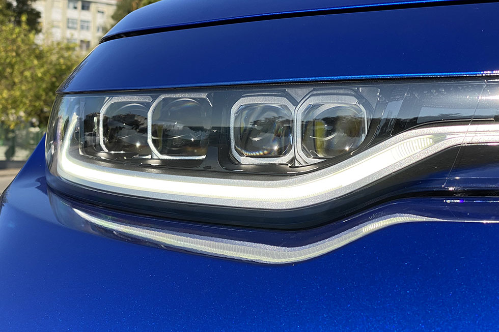 Enquanto a secção traseira é daquelas que nos faz querer estacionar de costas para uma parede, a dianteira é daquela categoria do “primeiro estranha-se, depois entranha-se”. Em alguns momentos, o desenho do e-Soul até nos fazer lembrar um Stormtrooper, pelo que a empatia acaba por surgir facilmente, mesmo com a presença da tampa de carregamento do sistema posicionada nesta área, o que, segundo a Kia, serve para facilitar o acesso aos pontos de carregamento públicos, o que até faz sentido. A maior das vantagens do Kia Soul, no entanto, está mesmo no formato original da sua carroçaria. Os ângulos mais retos e o habitáculo com um formato mais aproximado ao de um cubo podem parecer estranhos quando olhamos para este modelo de fora, mas isso é apenas um excelente cartão de visita para o que vamos encontrar no habitáculo.