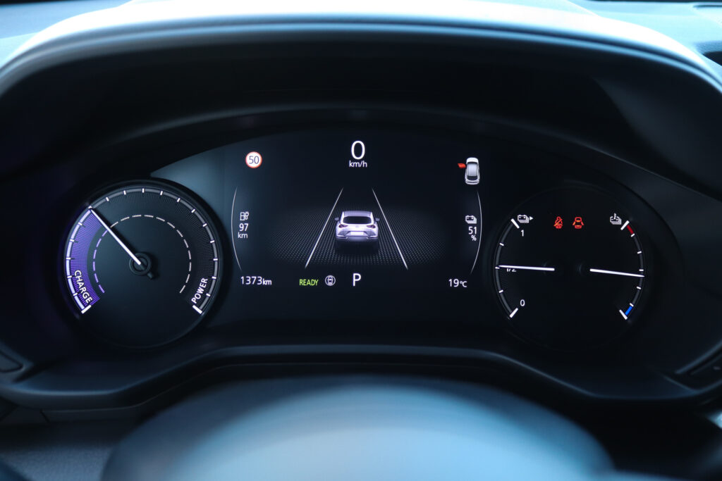Equipamento (7/10) Apesar do Mazda MX-30 Advantage ser uma edição limitada posicionada como a mais acessível da gama, a verdade é que o recheio de equipamento de série é bastante positivo. De destacar as jantes de 18 polegadas, luzes Adaptative LED, vidros traseiros escurecidos e retrovisores aquecidos, com recolhimento automático e memória. No interior conta ainda com bancos elétricos com memória e aquecidos. No capítulo da segurança, o MX-30 está, igualmente, bem recheado, com um extenso pacote de assistentes à condução.