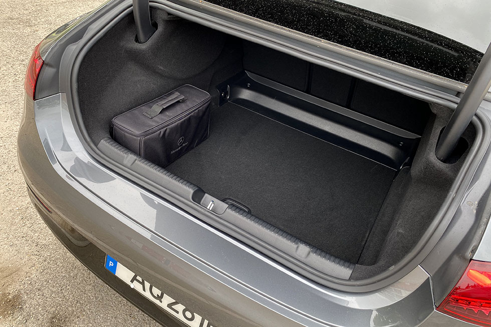 Menos visível, no entanto, é a forma como acedemos à bagageira, que no EQS é feita através de uma quinta porta de abertura conjunta com o vidro traseiro e no EQE conta com uma solução mais semelhante à de um modelo com carroçaria de três volumes, em que apenas a tampa da bagageira abre.