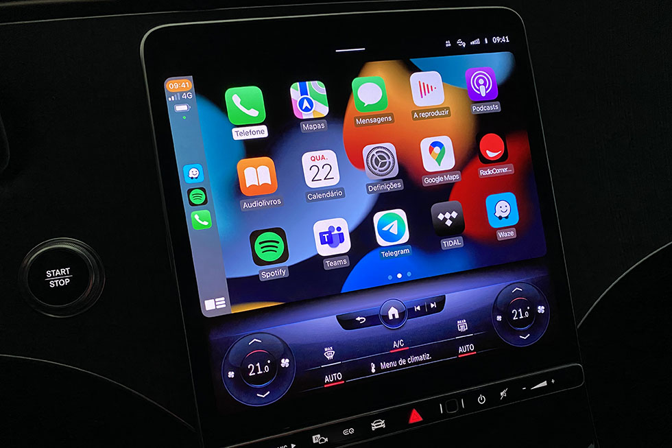 O ambiente a bordo continua num patamar muito elevado e a unidade ensaiada contava com os assentos multi-contorno, com aquecimento, ventilação e até massagens, o que resultou na perfeição para os momentos com mais trânsito. E para terminar, ainda tivemos oportunidade de melhorar todo o ambiente com o sistema de iluminação em LED do habitáculo e com o sistema de som mais desenvolvido, da autoria da Burmester.