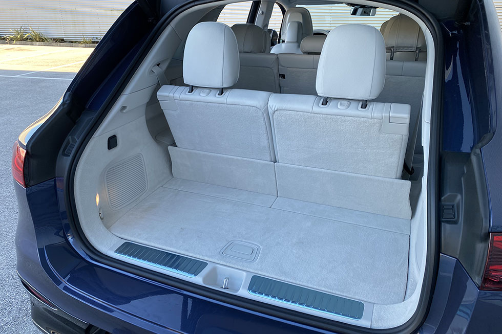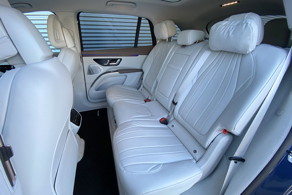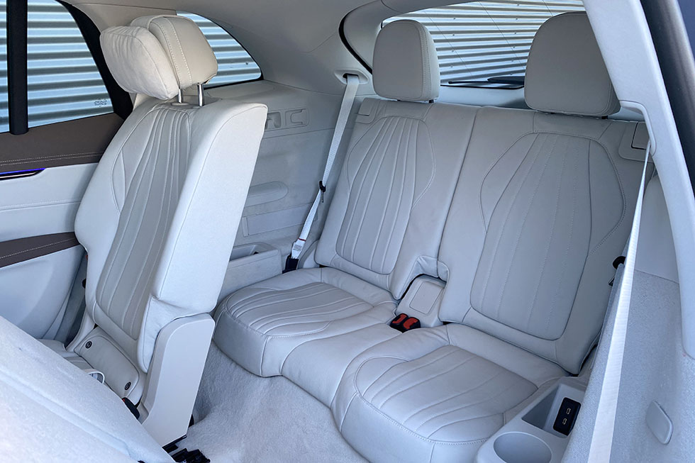 A presença da terceira fila de assentos neste EQS SUV é um daqueles trunfos que vão sempre dar jeito quando há mais de cinco pessoas a querer ir a algum lado. E isso vai sempre acontecer diversas vezes. No entanto, este é também o ponto onde encontramos pontos menos positivos neste modelo. O acesso aos lugares traseiros é excelente, sendo que estes também contam com regulações elétricas, mas para aceder à terceira fila, há alguns desafios a superar, nomeadamente no que diz respeito ao rebatimento automático dos assentos da segunda fila e a entrada e saída para a terceira fila.