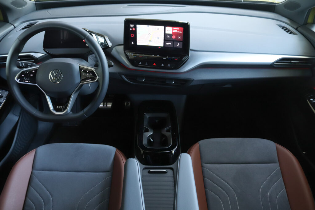 No entanto, é mesmo no espaço e sentido prático que o ID.4 tem um dos seus pontos mais fortes. Na primeira fila, tanto condutor como passageiro têm espaço desafogado e vários compartimentos de arrumação, enquanto atrás o espaço é, igualmente abundante. É talvez uma das poucas propostas que é capaz de transportar efetivamente três passageiros com conforto, dado esse apoiado pelo fantástico espaço para pernas. Tudo isto é acompanhado por uma bagageira com 543 litros, expansível até aos 1575 litros com os bancos traseiros rebatidos.