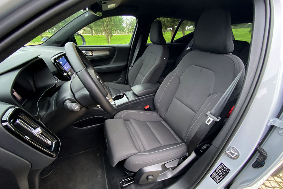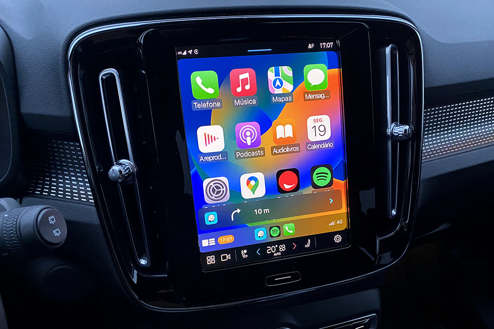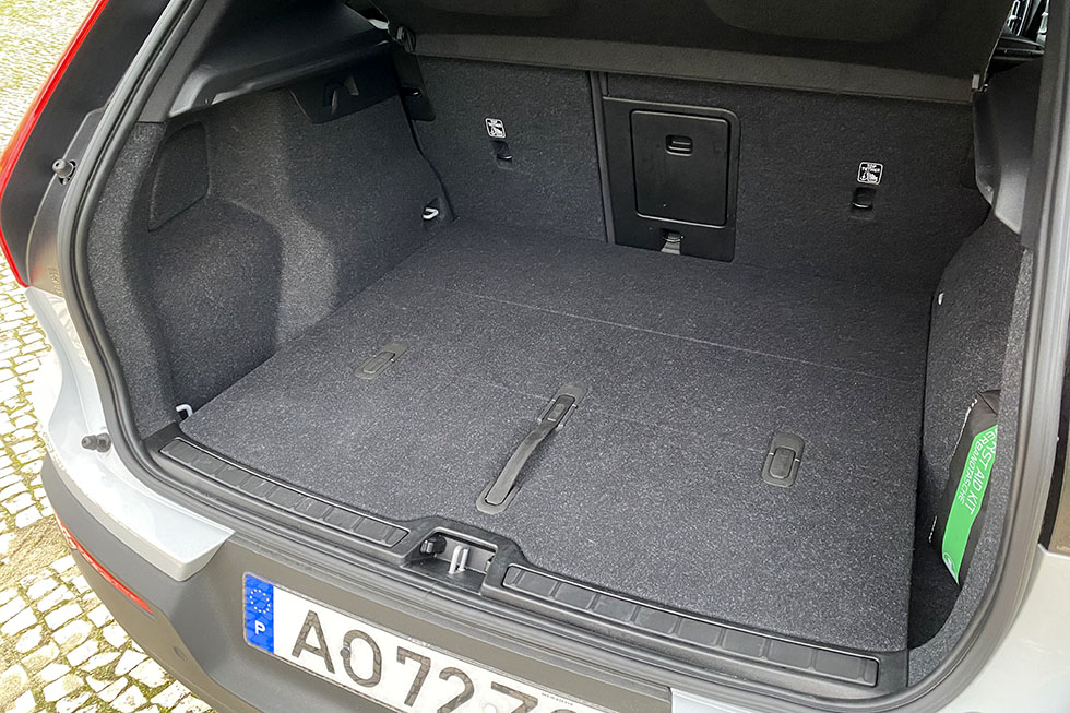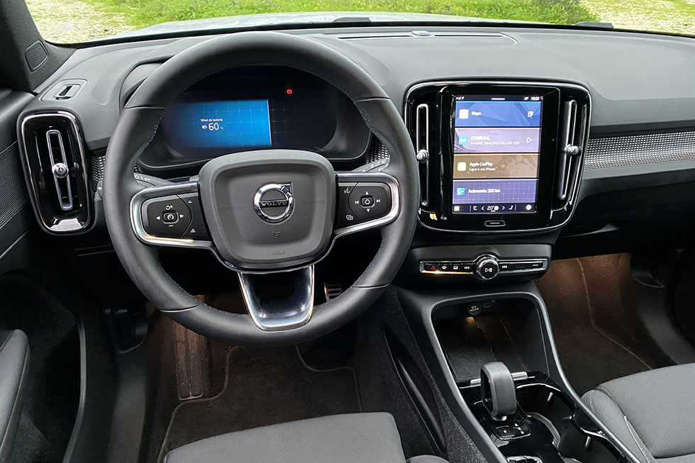 Com a versão Recharge 100% elétrica, o XC40 já inclui a instrumentação com o desenho mais recente e o monitor central na vertical onde marcam presença os serviços do Google. Com a versão de equipamento intermédia com o Pack Plus (+2480 euros), como a que tivemos oportunidade de ensaiar, já estão incluídos equipamentos como o portão da bagageira automático e com abertura e fecho elétrico, o sistema Pilot Assist, que mede a distância para o carro da frente e até tem a capacidade de ir levando o XC40 atrás do carro da frente numa fila de trânsito, e também o sistema IntelliSafe Surround (BLIS), que consegue “ler” tudo o que se passa em torno do XC40 para os dias em que podemos estar um pouco mais distraídos. Em falta fica a possibilidade de personalizar a instrumentação mais ao nosso gosto e a ligação aos sistemas Apple CarPlay e Android Auto sem a necessidade de ter um cabo ligado.
