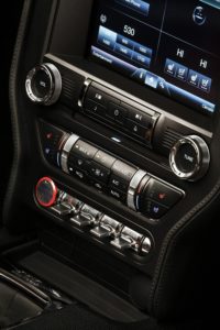 A identidade americana do exterior também é trazida para o habitáculo, com um painel de instrumentos de aparência tradicional e um volante o mais simplificado possível, mas mantendo espaço para alguns comandos do computador de bordo e do rádio. Na consola central, a Ford montou o sistema de informação e entretenimento SYNC 2, mas o que mais chama a atenção são os botões que comandam elementos como o controlo de tração, na base da consola, ao lado do botão da ignição, na forma de interruptores tradicionais.