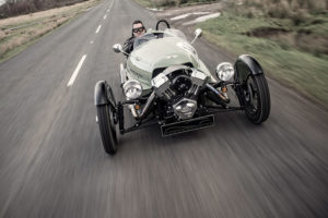 Se nessa época o 3-Wheeler contava com um motor de 7cv, a sua versão contemporânea debita hoje uns ‘simpáticos’ 82 cv. Pouco expressivos, dirão alguns, mas que se assumem fulgurantes quando associados à leveza (525 kg) e carências estruturais deste Morgan, sem tecto, capota ou pilar B, mas livre de constrangimentos.