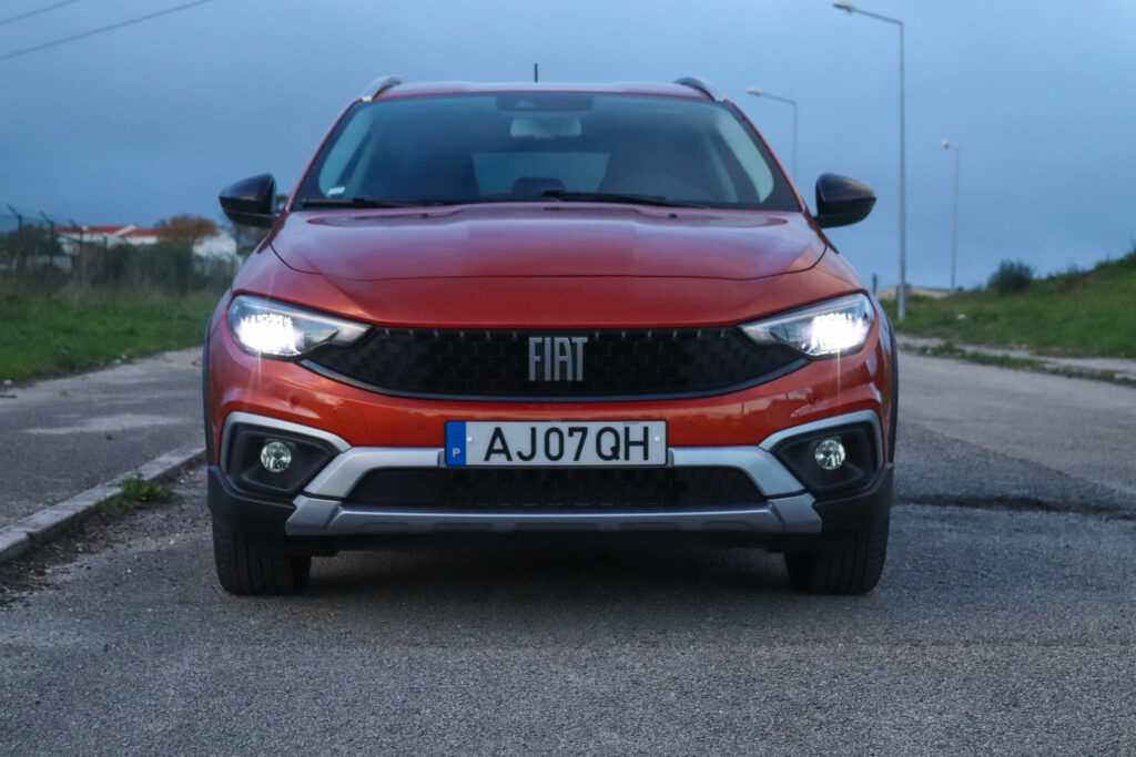 Equipamento (7/10) Apesar de ter um bom recheio de série, para se ter um Fiat Tipo Cross igual ao que ensaiámos é necessário recorrer a alguns opcionais. Seja como for, conta de série com coisas como painel de instrumentos avançado a cores, ar condicionado automático, apoio de braço dianteiro e traseiro, banco traseiro rebatível, espelhos retrovisores elétricos, sensores de luz e chuva, sensores de estacionamento dianteiro e traseiro, vidros traseiros escurecidos, jantes de 17 polegadas, cruise control adaptativo, aviso de transposição de faixa plus ou faróis em LED. Um dos pontos altos desta renovação encontra-se na lista de opcionais, o ecrã central de 10 polegadas com o novo sistema de infotainment (550€), bem como a cor laranja (550€), câmara traseira de estacionamento (400€) ou banco do passageiro regulável em altura (100€).