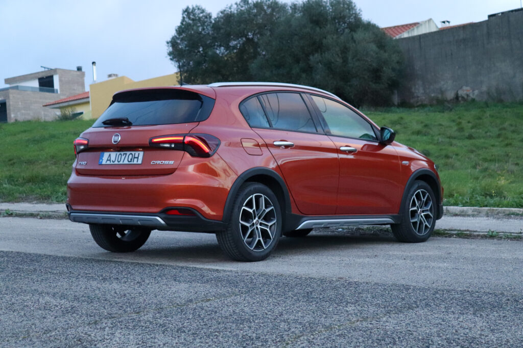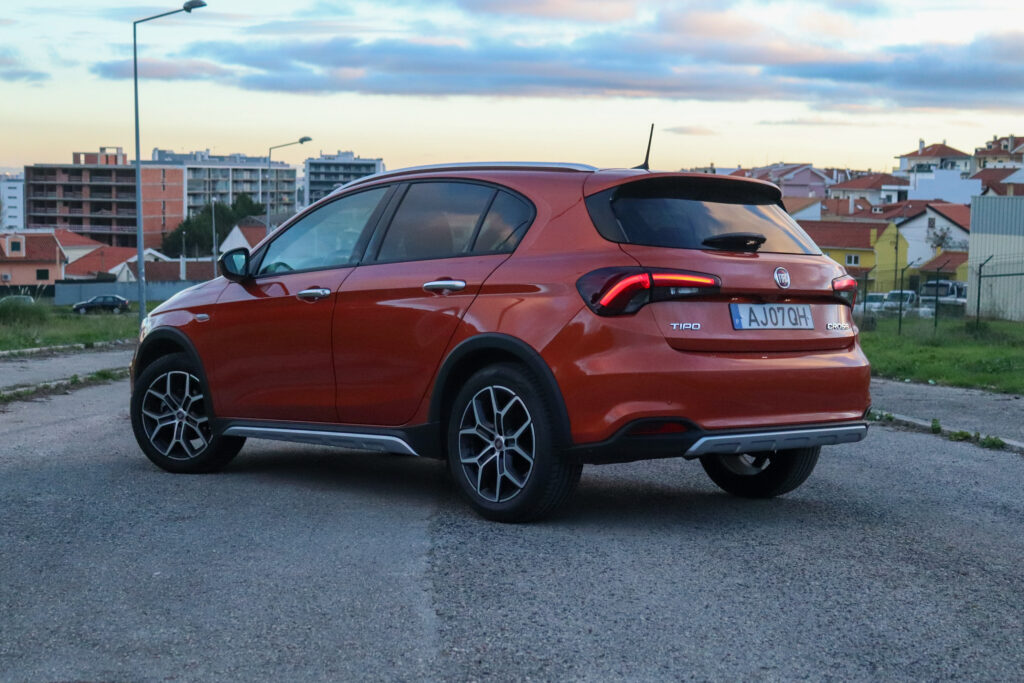Exterior (8/10) Com os SUV e crossover cada vez mais na moda, algumas marcas apostam em adaptar algumas gamas a esta realidade. No caso da Fiat nasceu o Tipo Cross, uma variante que pretende dar um pouco mais de robustez graças a proteções inferiores de carroçaria em plástico preto, mas também o aumentar da altura ao solo em sensivelmente quatro centímetros. No exterior destaca-se ainda a substituição do logo redondo pelo nome “Fiat” na dianteira.