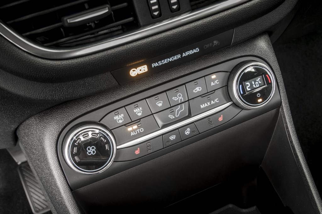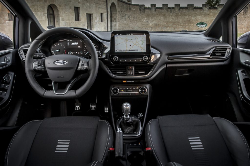 No interior, o destaque vai para o ar condicionado manual, o sistema de áudio com visor de ecrã tátil a cores de 6,5″, o Ford SYNC 3, a conetividade USB e para as seis colunas. Tapetes em veludo dianteiros e traseiros e botão de ignição Ford Power, sistema Ford KeyFree e limitador de velocidade completam o recheio interior de equipamento.