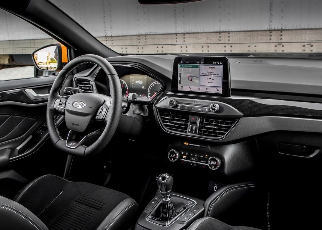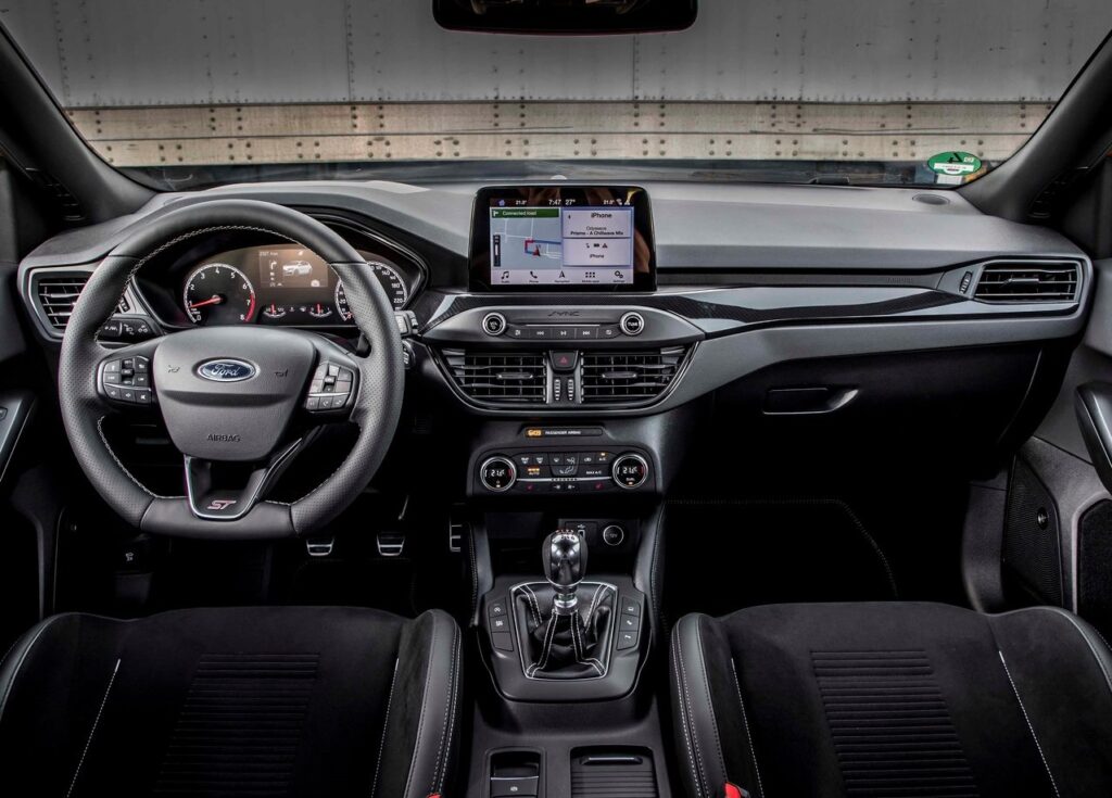 Olhar para o interior do Focus ST oferece sensações antagónicas: abrindo a porta vemos os bancos Recaro, o volante em pele e salivamos por nos sentarmos ao volante. Uma vez sentados e com a posição de condução acertada, surge a desilusão: dando de barato não haver mais couro nos bancos (não faz muita falta…) a verdade é que há demasiados plásticos de menor valia misturados com revestimentos emborrachados que, apesar da excelente montagem, habitual na Ford, não deixa de fazer pensar que a casa da oval azul possa ter diminuído o conceito de qualidade.
