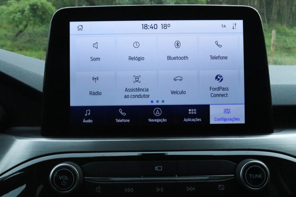 Equipamento (8/10) No capítulo do equipamento, o Ford Kuga em ensaio tem o nível Titanium, o mais acessível do modelo. No entanto, isso não significa que está mal equipado, bem pelo contrário. Na lista de série encontramos coisas como jantes de 17 polegadas, espelhos elétricos, farolins LED, sistema auxiliar de estacionamento dianteiro e traseiro, ecrã central de 8 polegadas com navegação, ar condicionado automático, bancos traseiros deslizantes e rebatíveis, entre outros. De referir que a unidade em ensaio conta ainda com os opcionais teto panorâmico (1240€), abertua e fecho de bagageira mãos livres (496€), vidros escurecidos (145€), Pack Teck (1240€), Pack Segurança (992€), Pack Winter (455€).