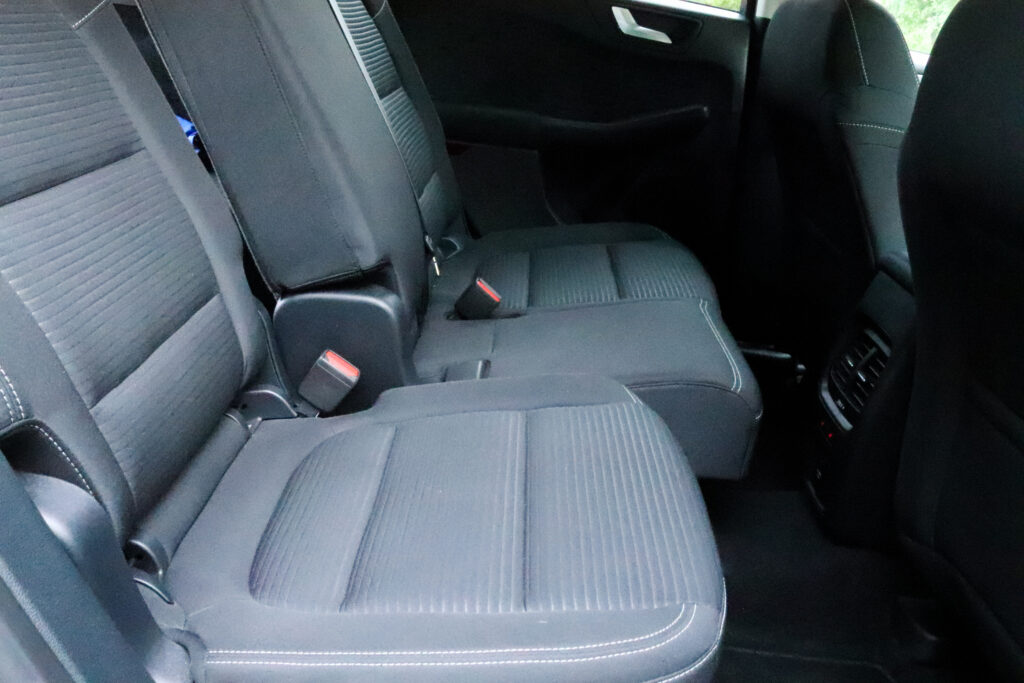 Interior (7/10) No interior, o Ford Kuga tem argumentos suficientes para seduzir as famílias portuguesas que procuram um SUV destas dimensões ao ter um dos habitáculos mais amplos do segmento. Na segunda fila de bancos encontramos um túnel central pouco intrusivo. Destaque ainda para os bancos deslizantes que permitem melhorar o espaço no habitáculo ou o da bagageira, conforme a posição dos mesmos, um detalhe que faz toda a diferença na versatilidade do SUV. Por falar em bagageira, esta garante entre 475 e 645 litros mediante o deslizamento dos bancos.