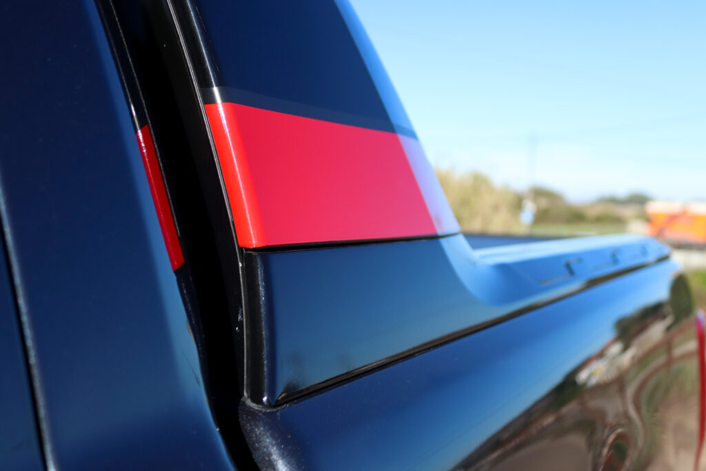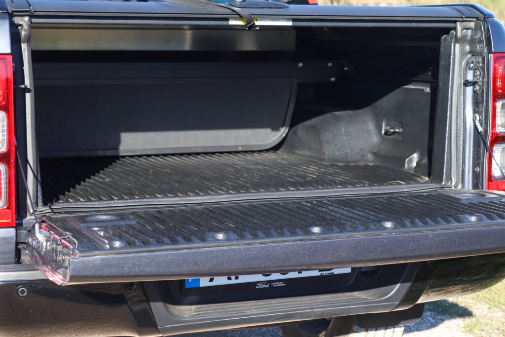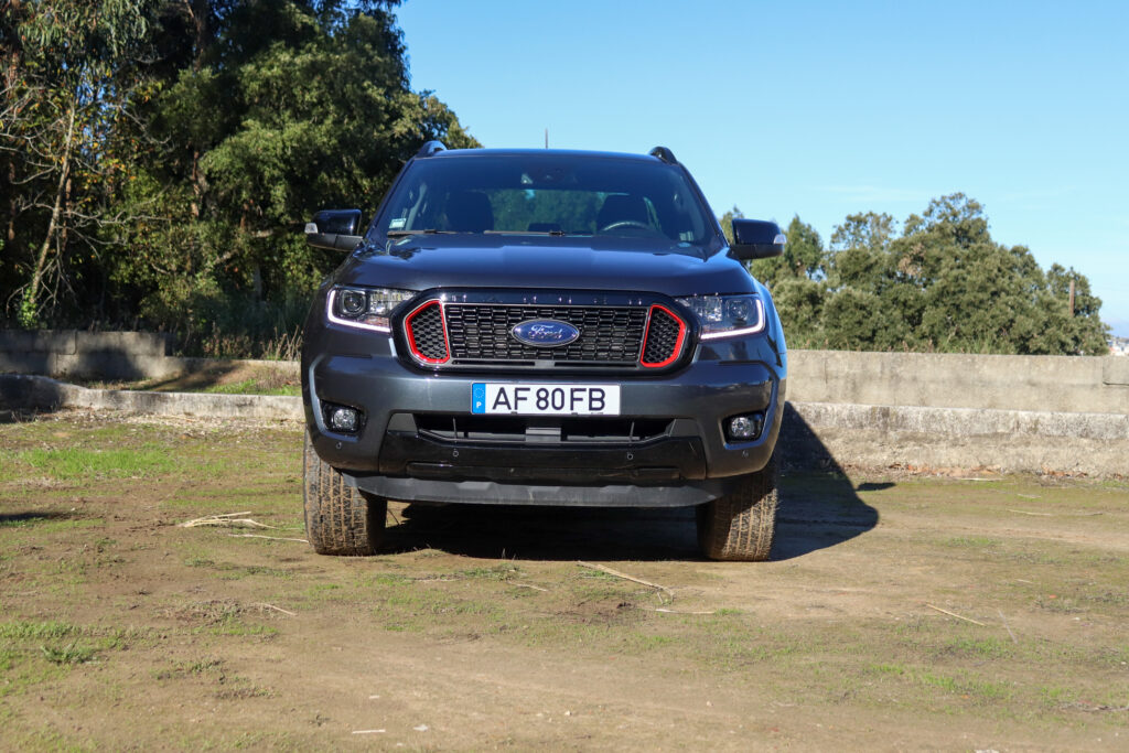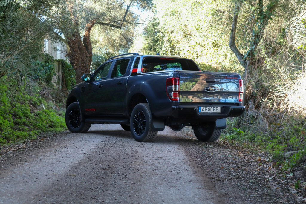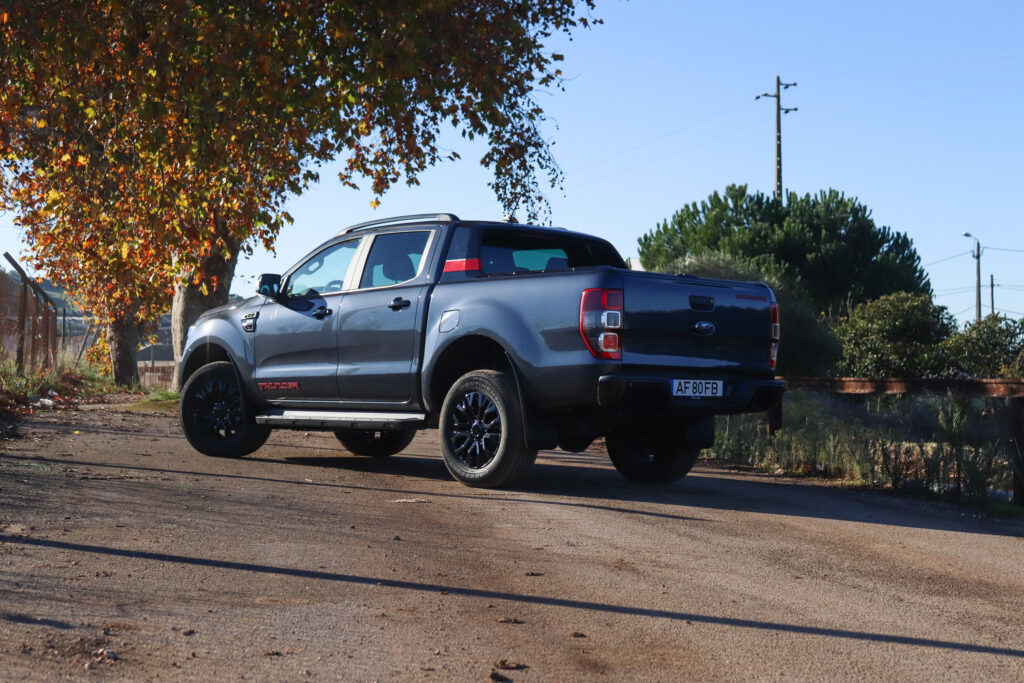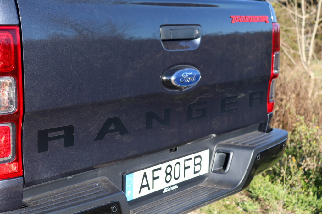 Exterior (8/10) A Ford Ranger é um caso de sucesso na Europa e isso tem feito com que a marca norte-americana tenha apostado forte no modelo. É caso disso o lançamento de várias versões especiais, onde se encontra esta Ranger Wildtrak Thunder, uma edição limitada a 4500 unidades. Esta diferencia-se pela cor exterior “Sea Grey”, jantes de 18 polegadas e apontamentos em vermelho, por exemplo, na designação da versão. Atrás, a caixa aberta é acompanhada por uma cobertura Black Mountain de cor escura. O funcionamento é manual, mas relativamente simples de fazer. De um modo geral, esta versão não é tão robusta e preparada para off-road como a Ranger Raptor, porém, mostra que uma pick-up também pode ser utilizada como um veículo diário.