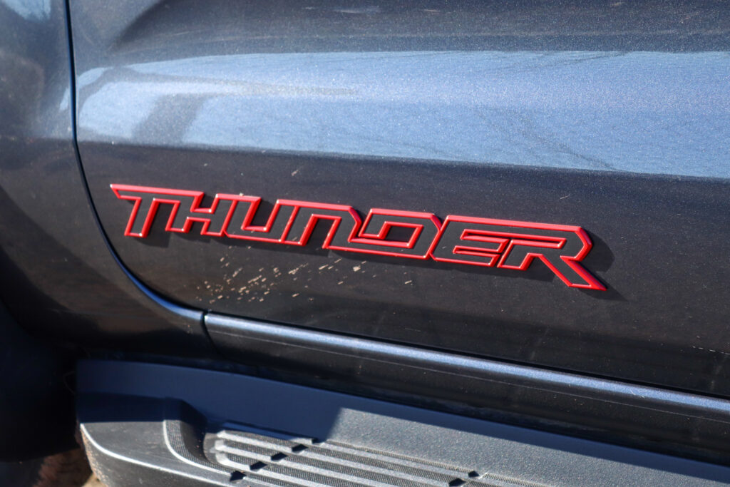 Interior (8/10) Também no interior encontramos uma preocupação em melhorar o conforto dos passageiros. Na configuração de cabina dupla, somos brindados com bancos em pele com o logo “Thunder” bordado em vermelho. Com um visual sóbrio, destaca-se pela inclusão de materiais rijos ao toque, mas com uma qualidade de construção muito interessante e, diga-se, em linha com alguns SUV do mercado.