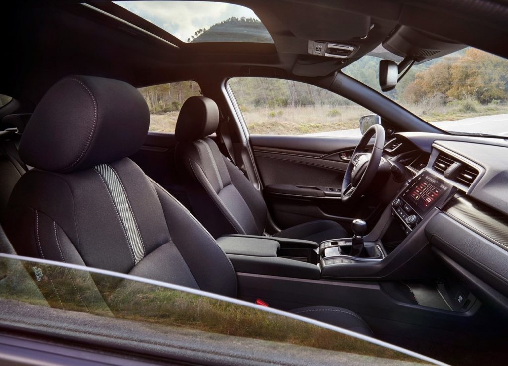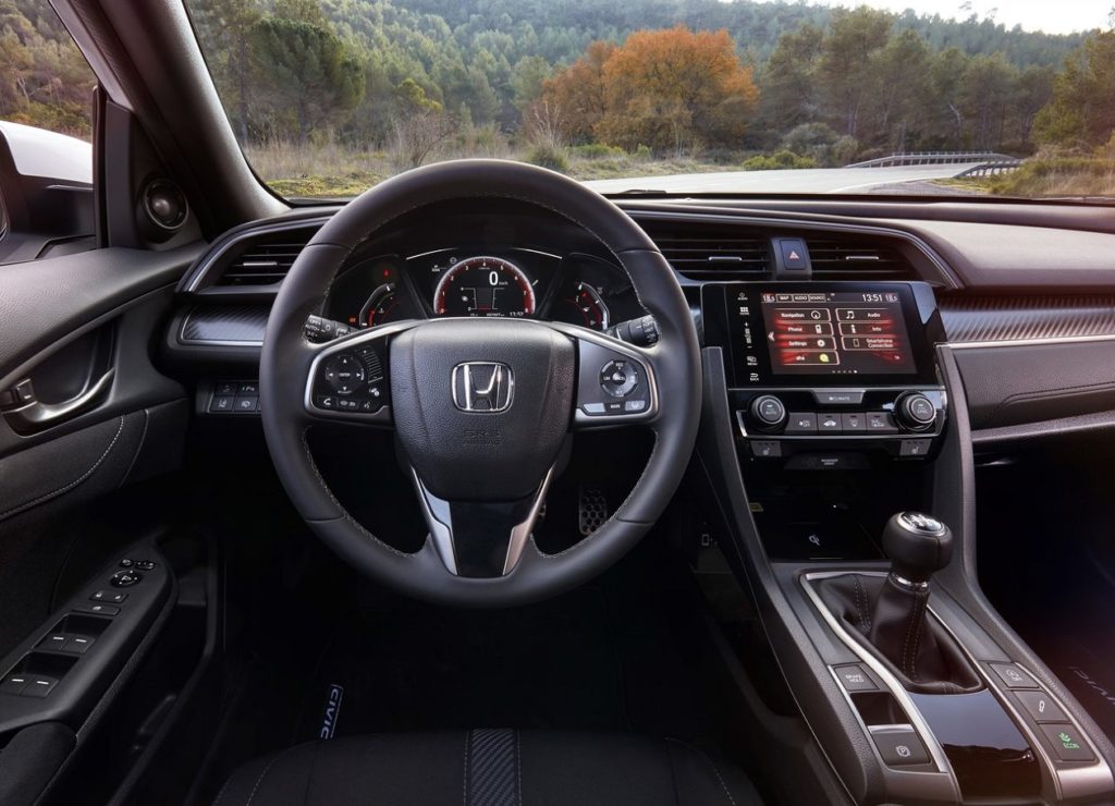 No interior a Honda decidiu alterar, radicalmente, o desenho e o arrumo dos comandos. Melhorou o espaço interior, mesmo não prolongando a utilização dos bancos mágicos, roubando alguma da versatilidade do anterior modelo. Muito plástico, mas com qualidade e, sobretudo, uma boa montagem, sendo que, desta feita, ninguém pode criticar a ergonomia do Civic. O Honda Connect está encerrado num ecrã de 7 polegadas que não sendo particularmente estimulante em termos de grafismo (o mesmo se passa com o painel de instrumentos) melhorou muito em termos de tempo de resposta e suavidade no toque. Oferece Apple CarPlay e o Android Auto. Depos, como não podia deixar de ser, temos algo tipicamente japonês: pode regular facilmente a temperatura nos botões colocado para o efeito, mas para direcionar o ar ou mudar a velocidade do ventilador… tem de fazê-lo no ecrã sensível ao toque do Honda Connect. De resto, muito espaço, posição de condução perfeita, ótima visibilidade e um carro onde sabe bem viajar e onde a bagageira é enorme, principalmente se abdicarmos da roda suplente. Não posso deixar de destacar a chapeleira que, aproveitando a forma da traseira do Civic, é pequena, enrola lateralmente e fechada parece um guarda chuva. Brilhante! Ah! há um pequeno detalhe: se não comprar o Executive Premium, compre a câmara de visão traseira, pois se a visibilidade para diante é ótima, para trás a generosa superfície vidrada é só aparente e nas manobras não é nada fácil olhar para trás. Esta versão oferece de série a câmara.