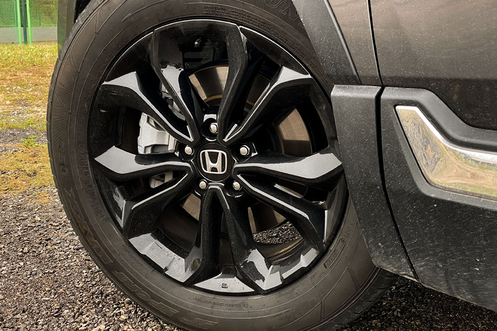 A imagem exterior do Honda CR-V é sobejamente conhecida, não só porque já se encontra em comercialização há uns anos e porque existem diversas unidades em circulação, mas também porque o formato desta quinta geração nunca quebrou radicalmente com os seus antecessores, foi apenas crescendo de tamanho. Na frente, a imagem mais nipónica é reforçada com um visual mais robusto, mas também com diversos frisos que compõe um todo, enquanto na vertente mais tecnológica são as luzes de condução diurna em LED e o próprio sistema de iluminação totalmente em LED que conferem a imagem mais sofisticada. Na secção traseira, e face à geração anterior, foi onde este modelo mais evoluiu em termos estéticos, com linhas mais agressivas e um visual com um tamanho imponente, no qual se destacam os grupos óticos de tamanho generoso. Na tampa da bagageira, é também onde se encontra a confirmação de se tratar de uma edição especial, através do badge “Black Edition” que aqui está colado, mas é graças a esta edição especial que as jantes de 18 polegadas estão pintadas de preto, tal como o friso da grelha frontal.
