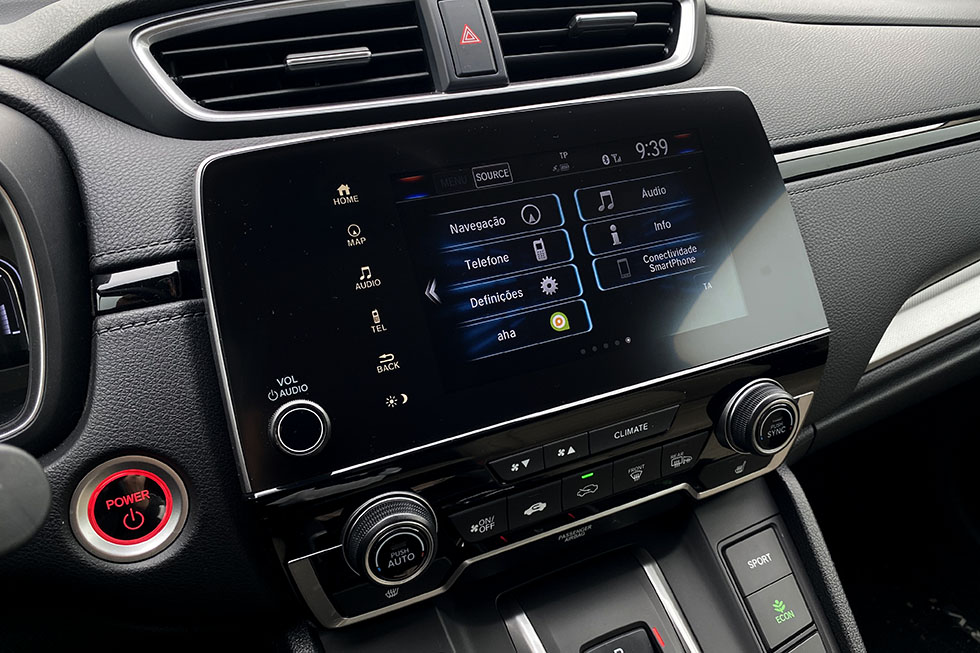 Apenas disponível no nosso mercado com este sistema híbrido, que também já conta com a designação e:HEV dos modelos mais recentes da marca, o Honda CR-V inclui um motor de dois litros a gasolina com 145 cavalos de potência, mas também um elétrico com potência suficiente para fazer locomover por ele próprio este Honda CR-V. Aliás, em ambientes urbanos ou mesmo em estrada, a locomoção deste híbrido é quase sempre efetuada em modo elétrico, ficando o motor de combustão apenas encarregue de gerar energia para ir alimentando a bateria de iões de lítio do sistema híbrido. Em contrapartida, nas viagens a velocidades mais elevadas em autoestrada, por exemplo, os papéis invertem-se, ficando o motor de combustão encarregue de fazer locomover o CR-V e o elétrico de lhe dar uma ajuda sempre que necessário. Em conjunto, conseguem uma potência máxima de 184 cavalos, que já permite um ritmo interessante a este SUV familiar, ainda que a caixa CVT de relação única, não tenha o funcionamento mais agradável em termos de ruído e feedback de condução.